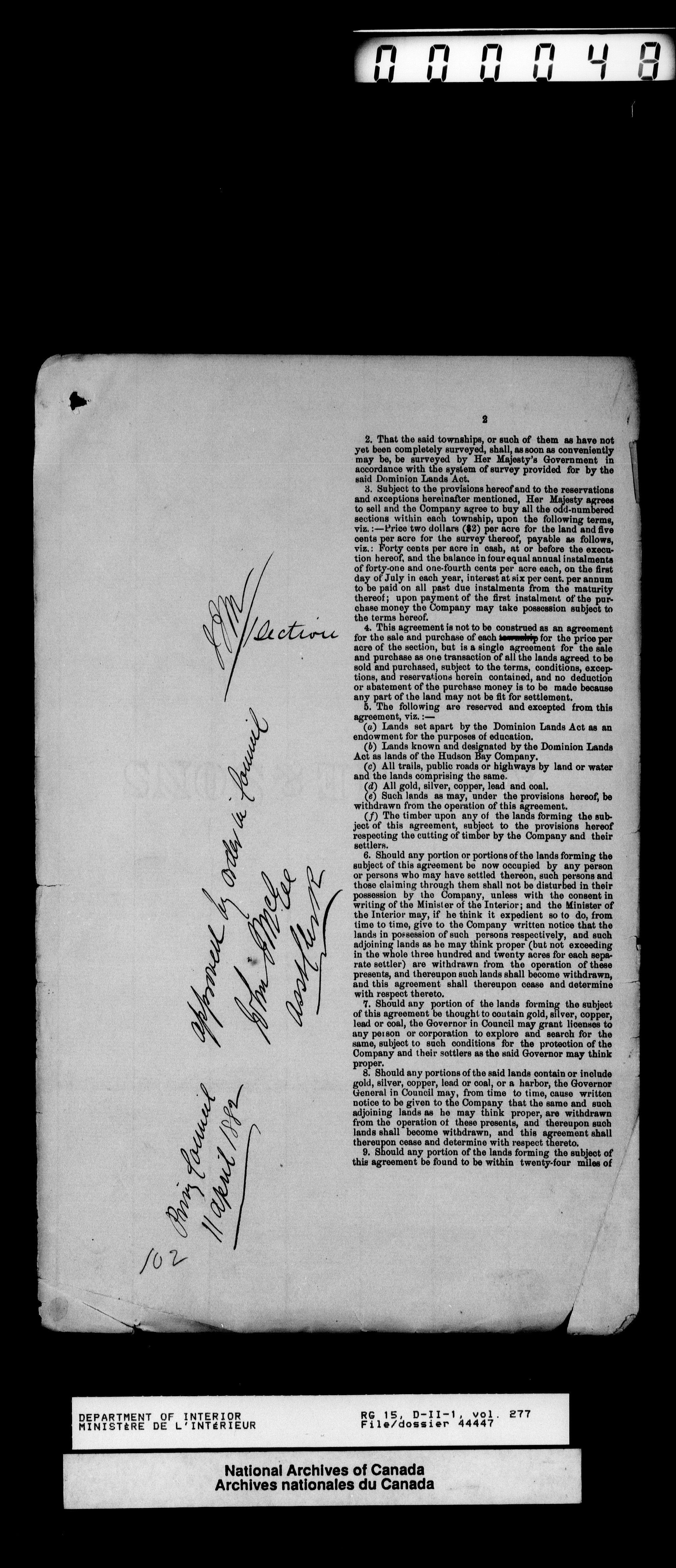 Department of Interior, Dominion Lands Branch, Headquarters Correspondence, 1871-1946