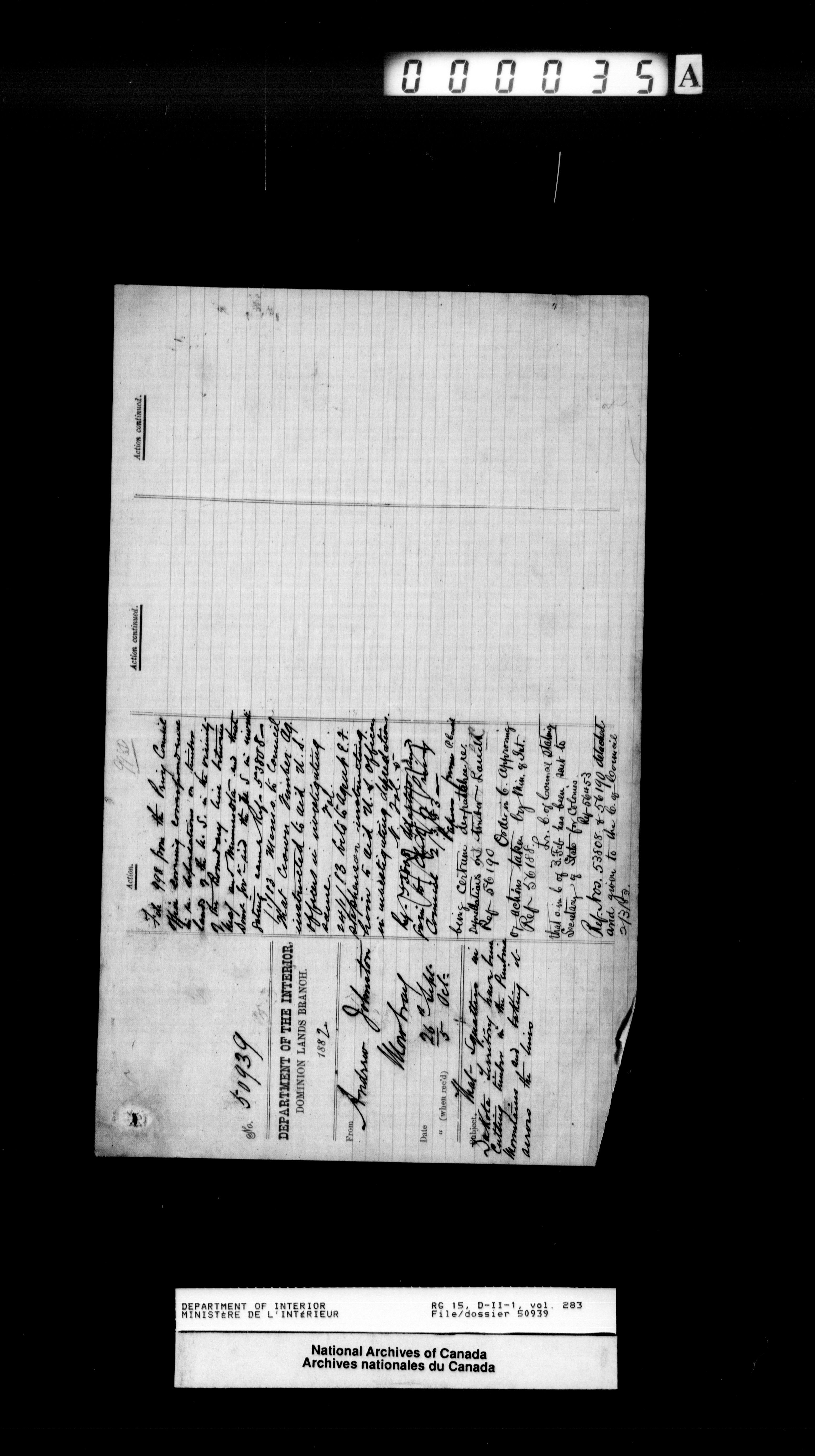 Central registry subject files created by the Dominion Lands Branch - 12549