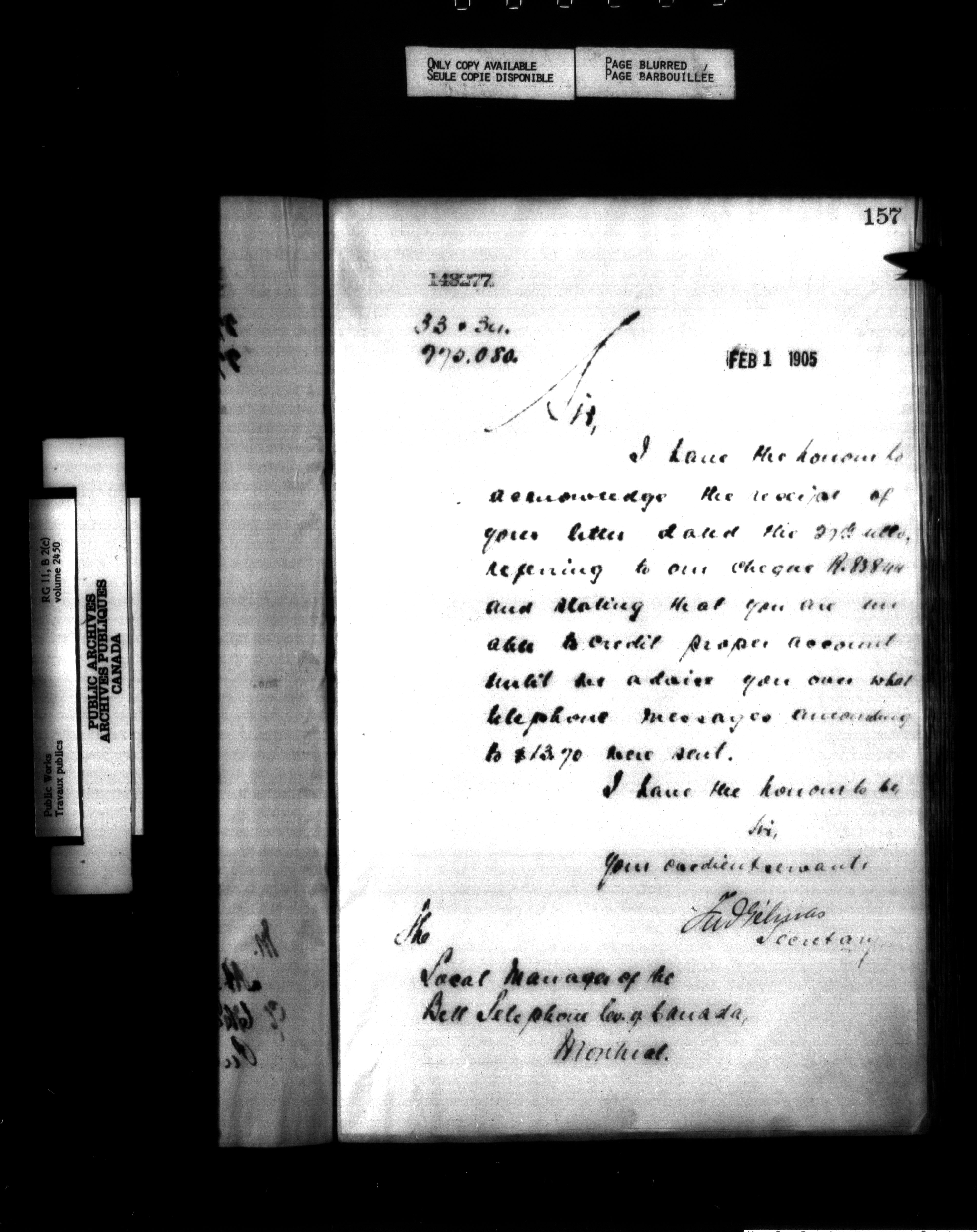 Department of Public Works : Outgoing Numbered Correspondence, 1879-1912 - 1255