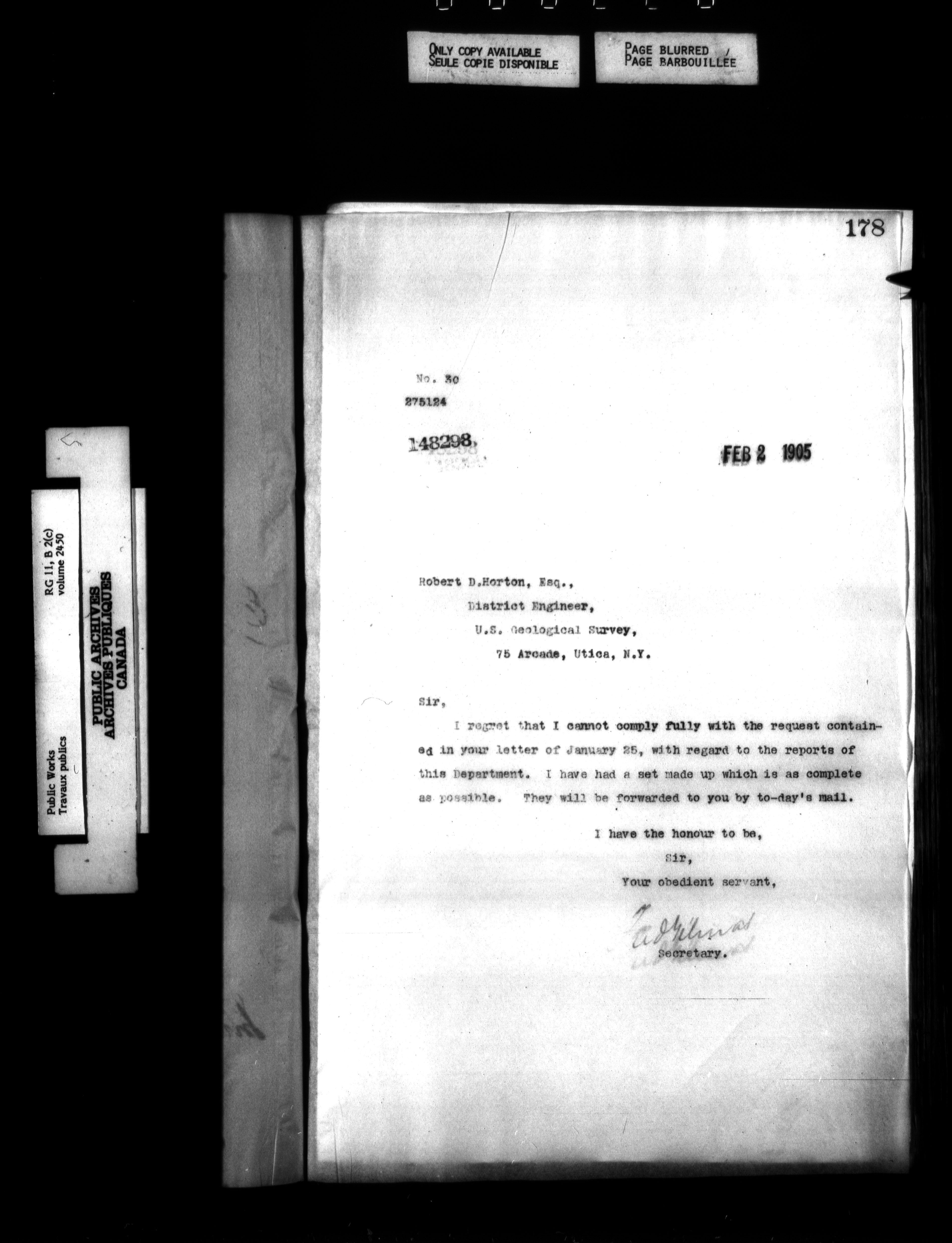 Department of Public Works : Outgoing Numbered Correspondence, 1879-1912 - 1255