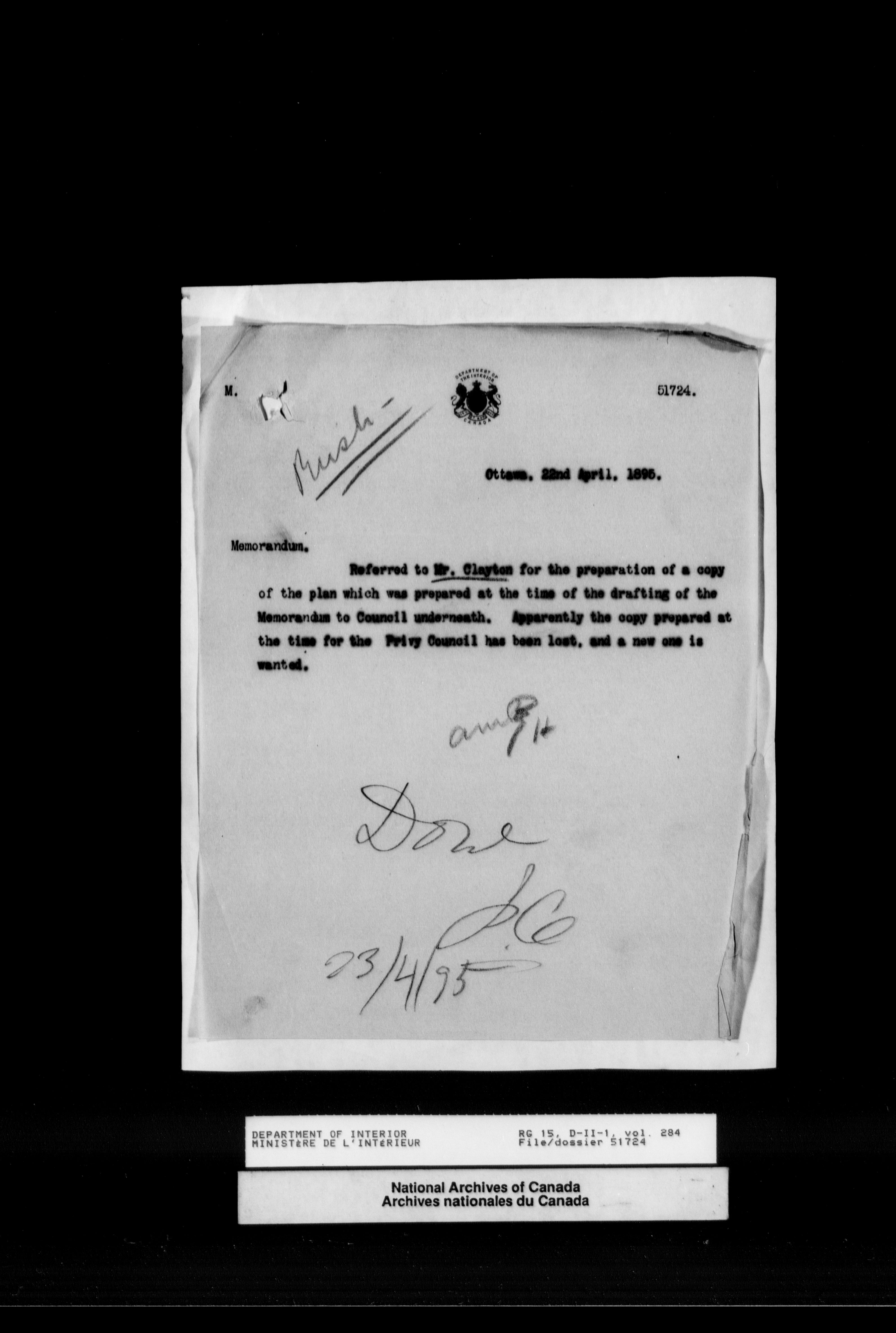 Central registry subject files created by the Dominion Lands Branch - 12550