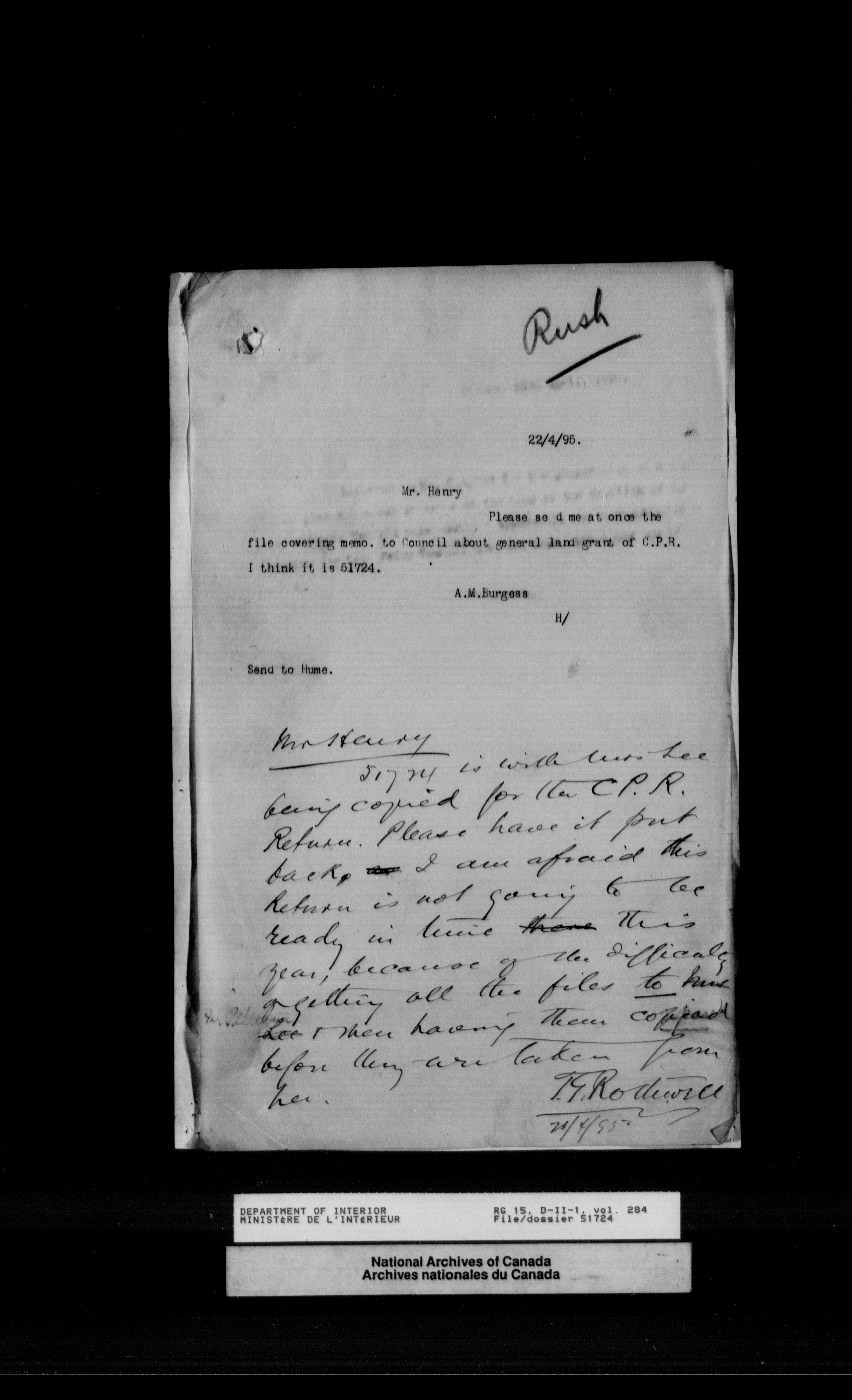 Central registry subject files created by the Dominion Lands Branch - 12550