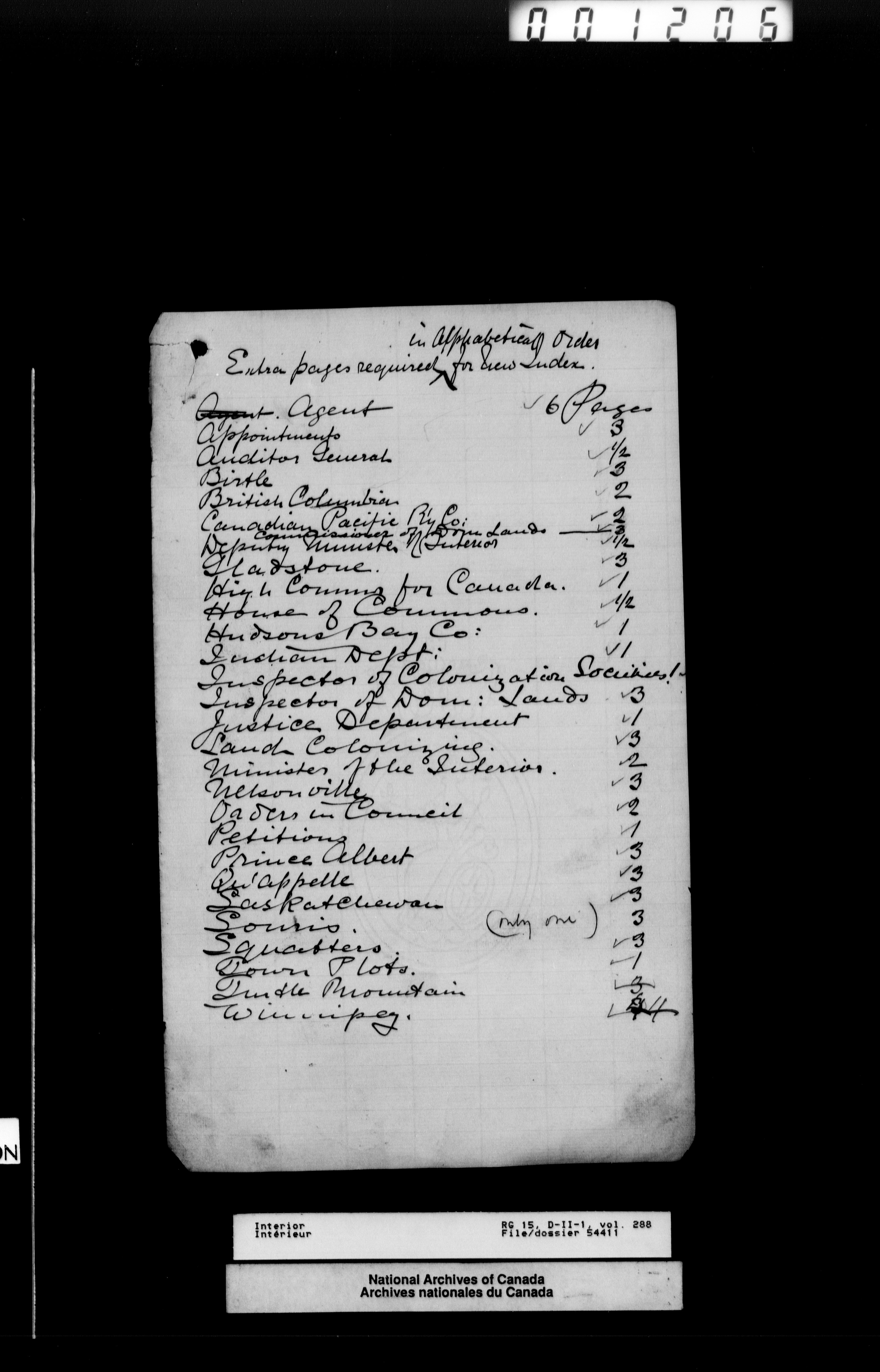 Central registry subject files created by the Dominion Lands Branch - 12554