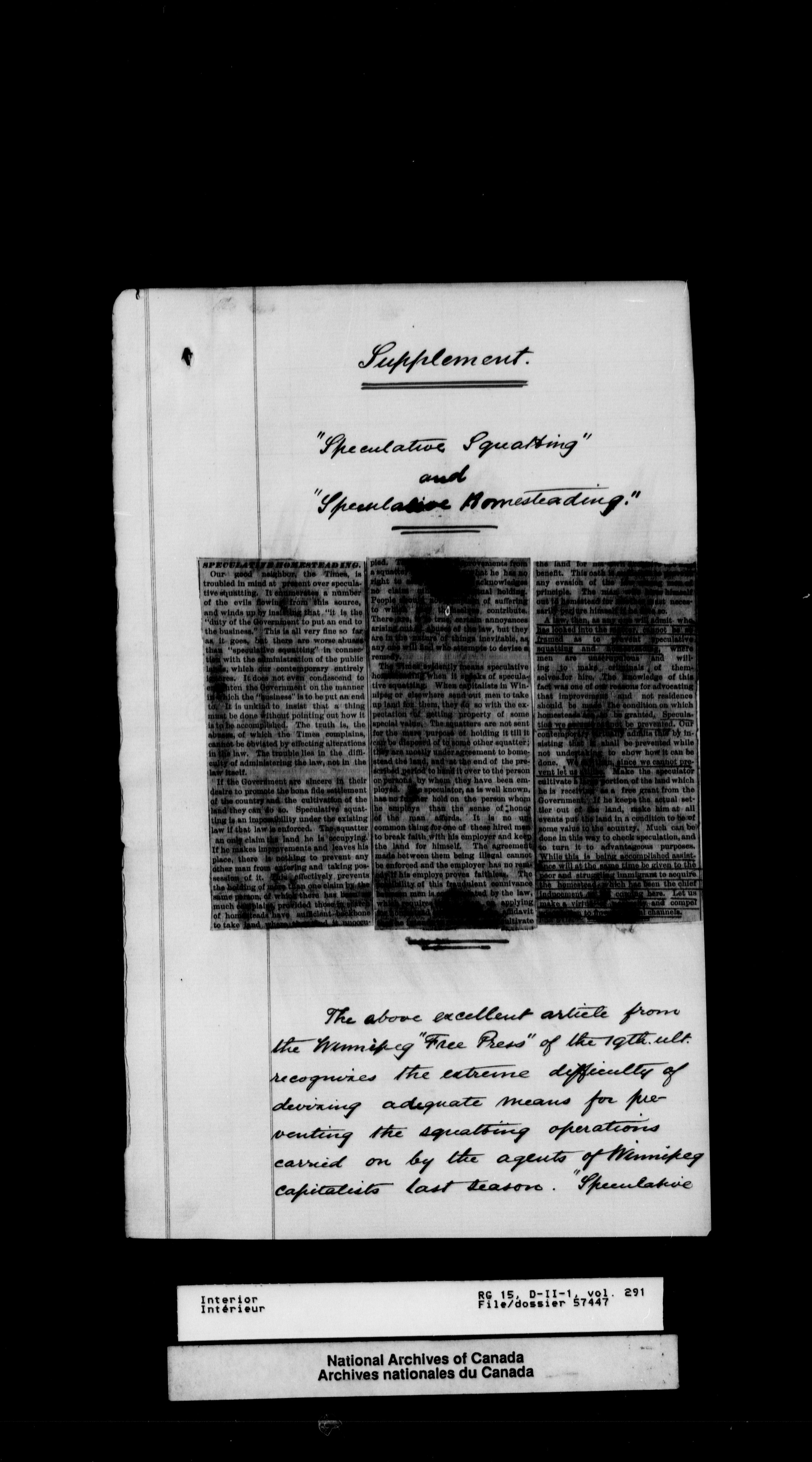 Central registry subject files created by the Dominion Lands Branch - 12558