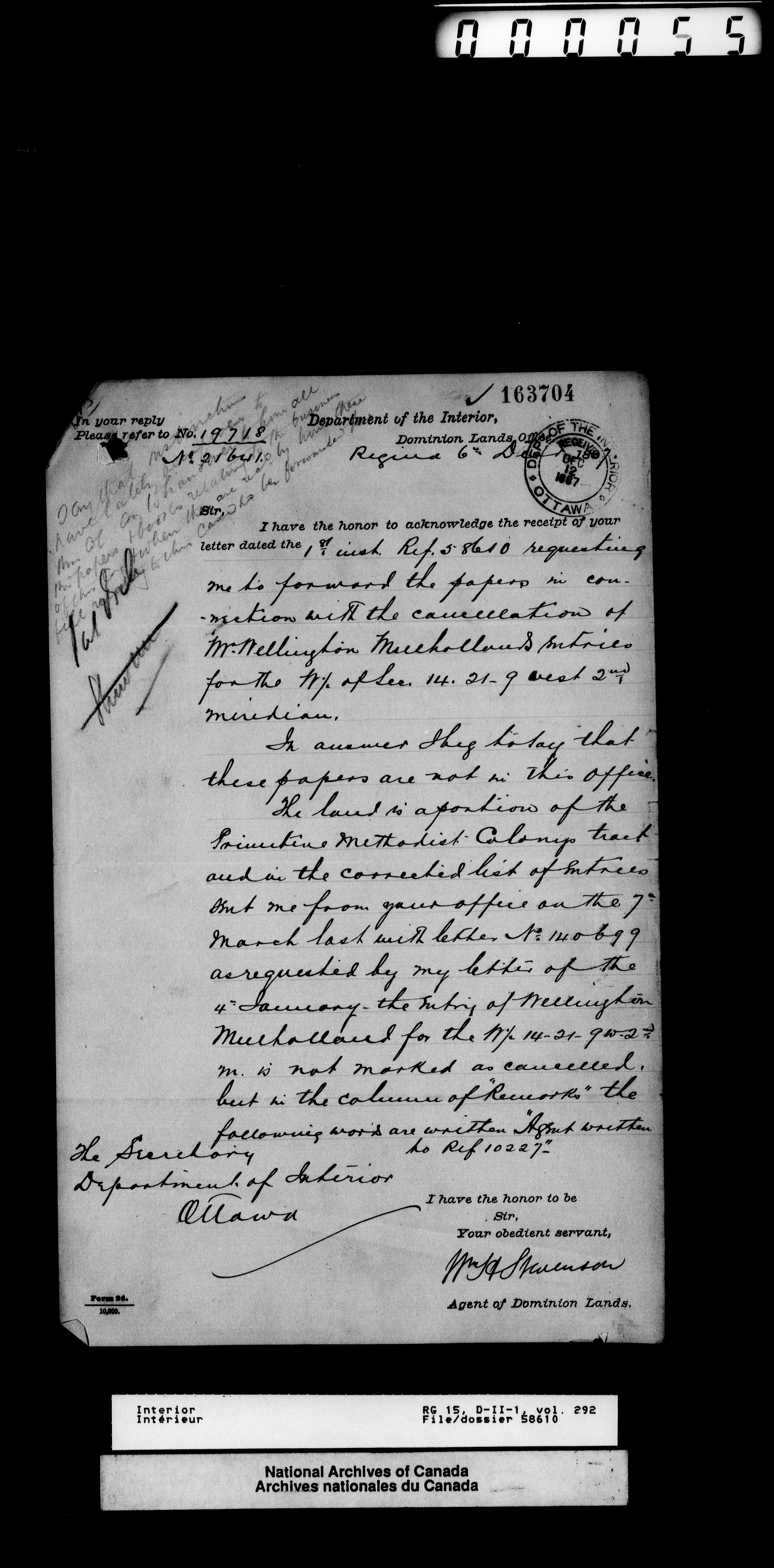 Central registry subject files created by the Dominion Lands Branch - 12559
