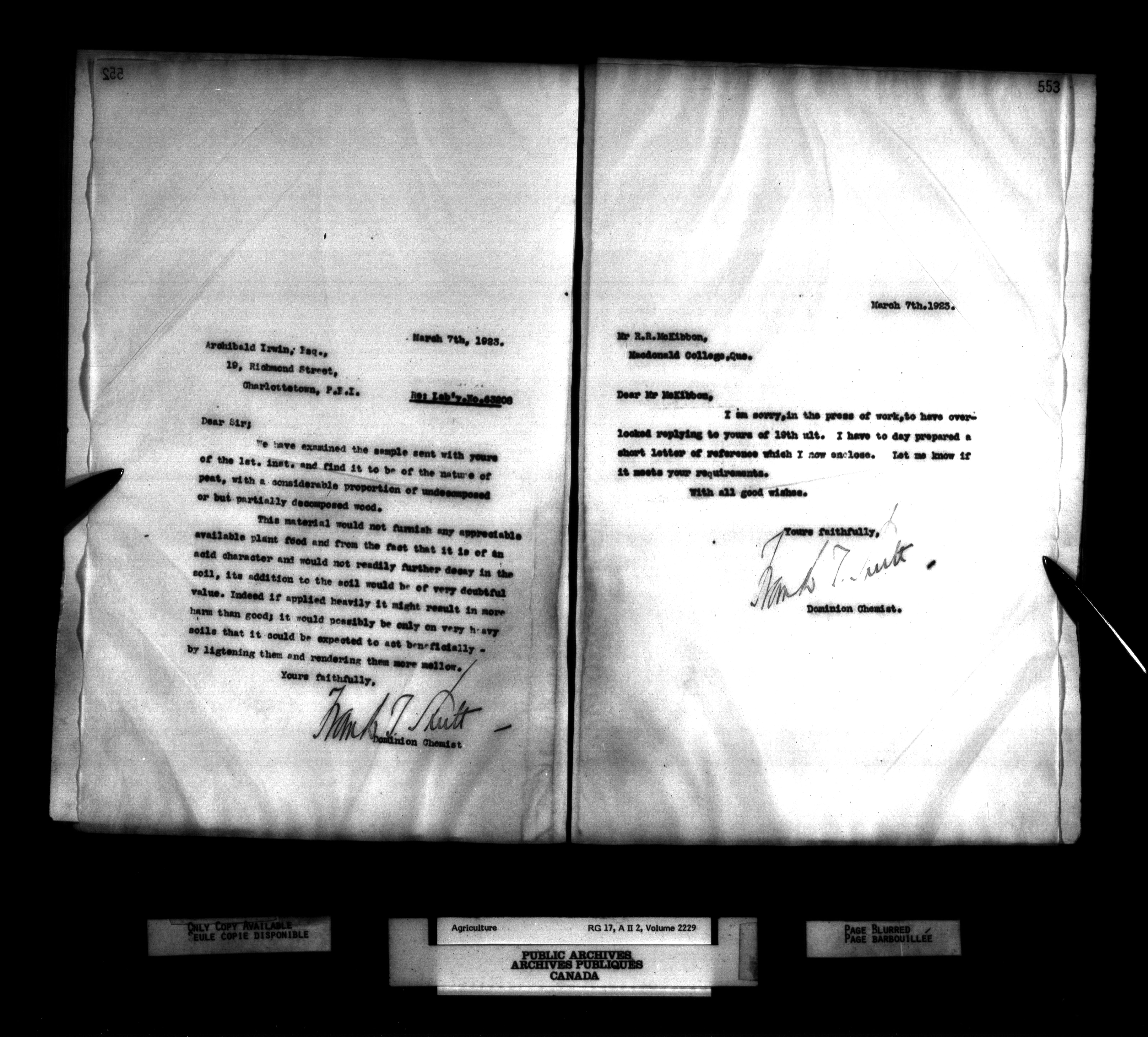 Department of Agriculture, Dominion Chemist : Letterbooks, 1889 - 1933 : T-1256