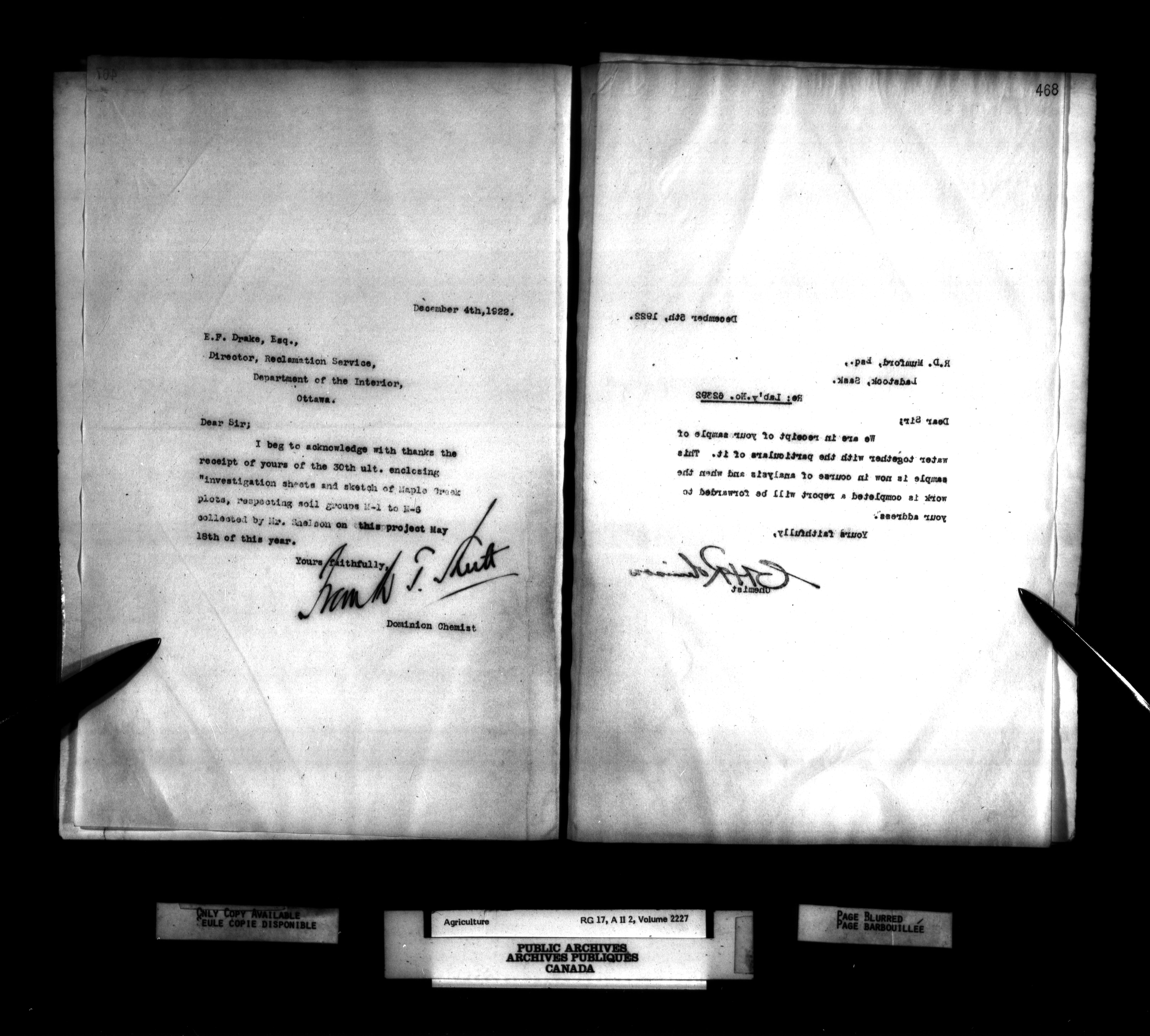 Department of Agriculture, Dominion Chemist : Letterbooks, 1889 - 1933 : T-1256