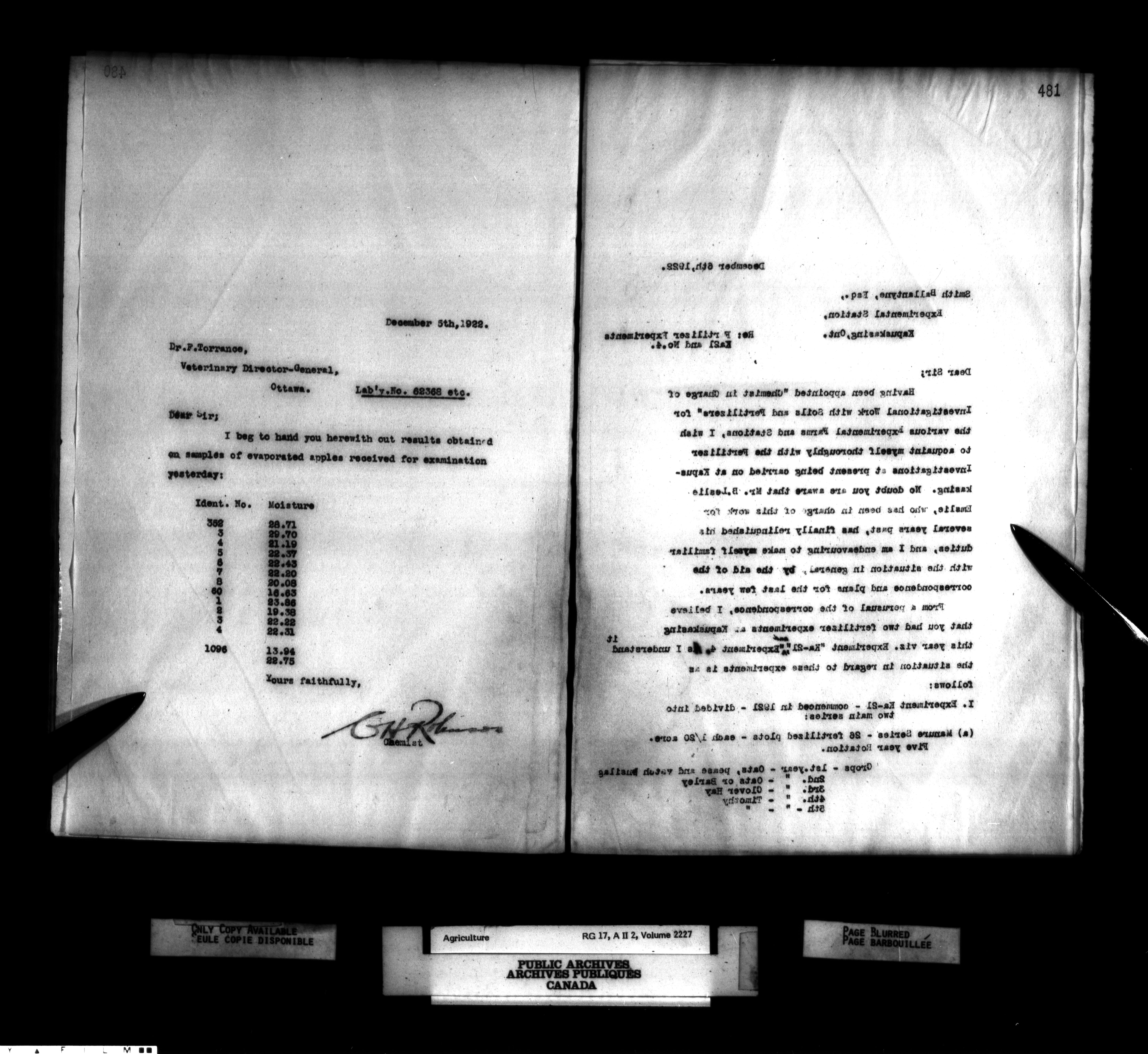 Department of Agriculture, Dominion Chemist : Letterbooks, 1889 - 1933 : T-1256