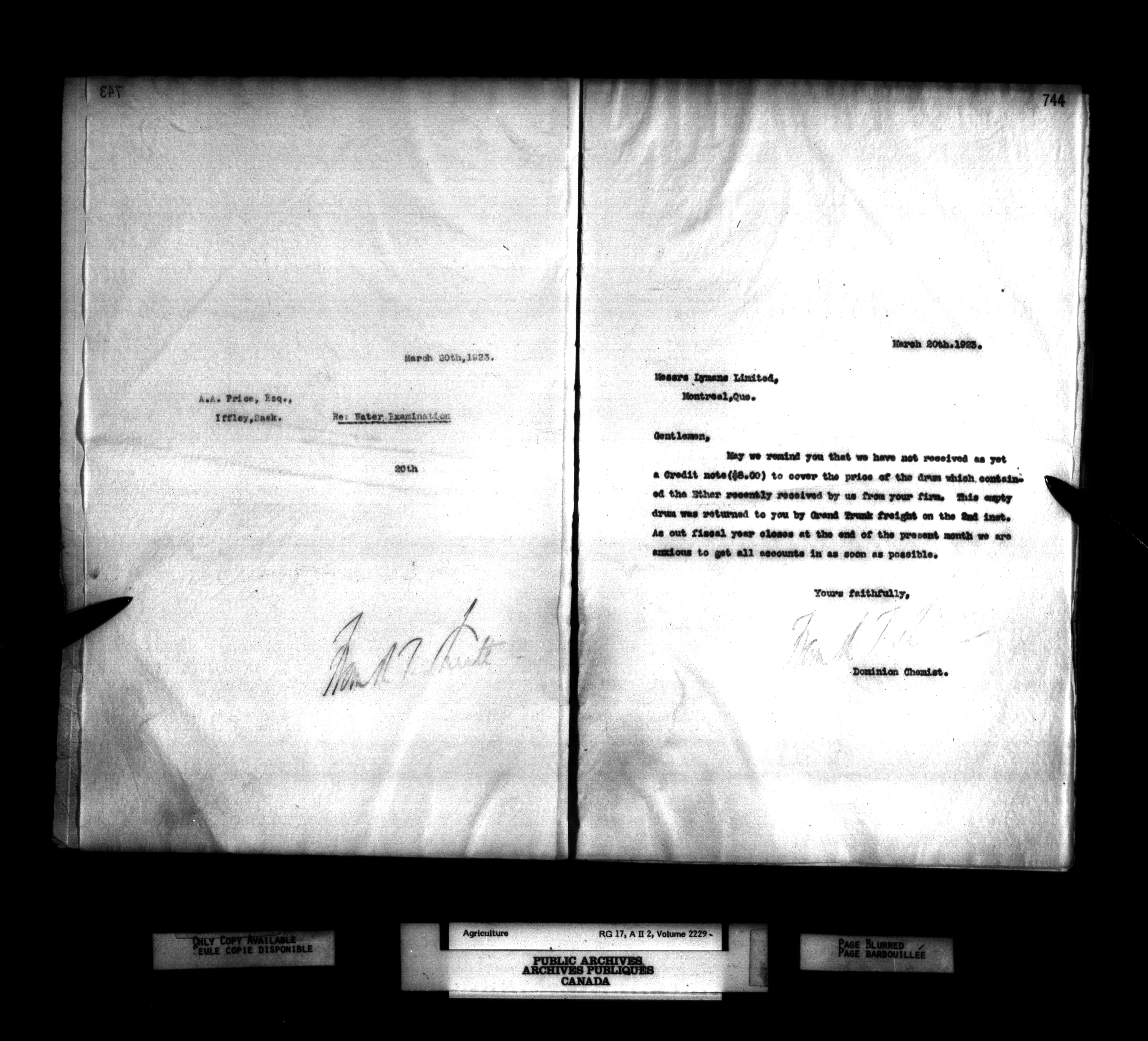 Department of Agriculture : Dominion Chemist, letterbooks - 1257