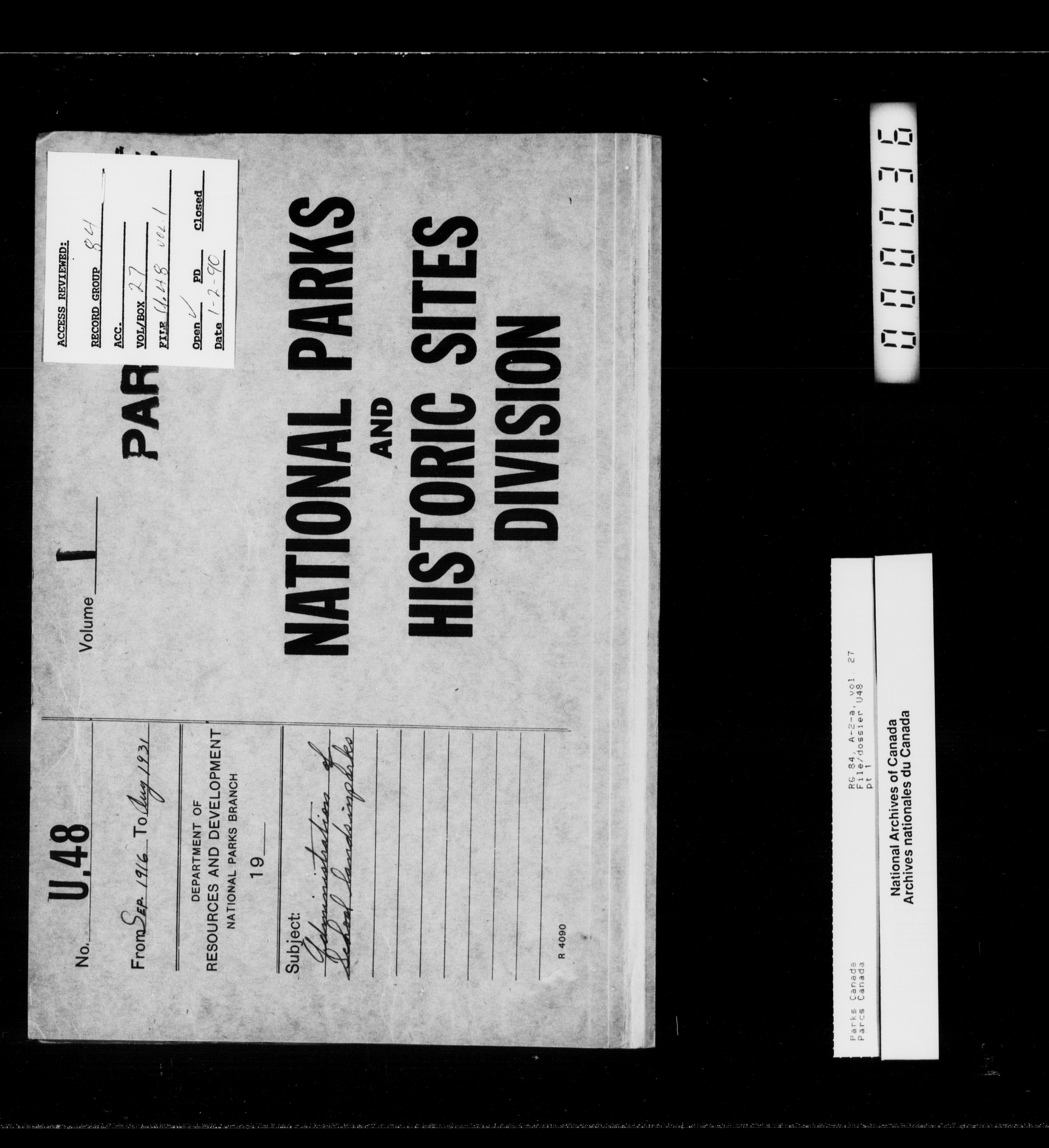 Department of Canadian Heritage, Canadian Parks Service : Park/subject classification system - 12575