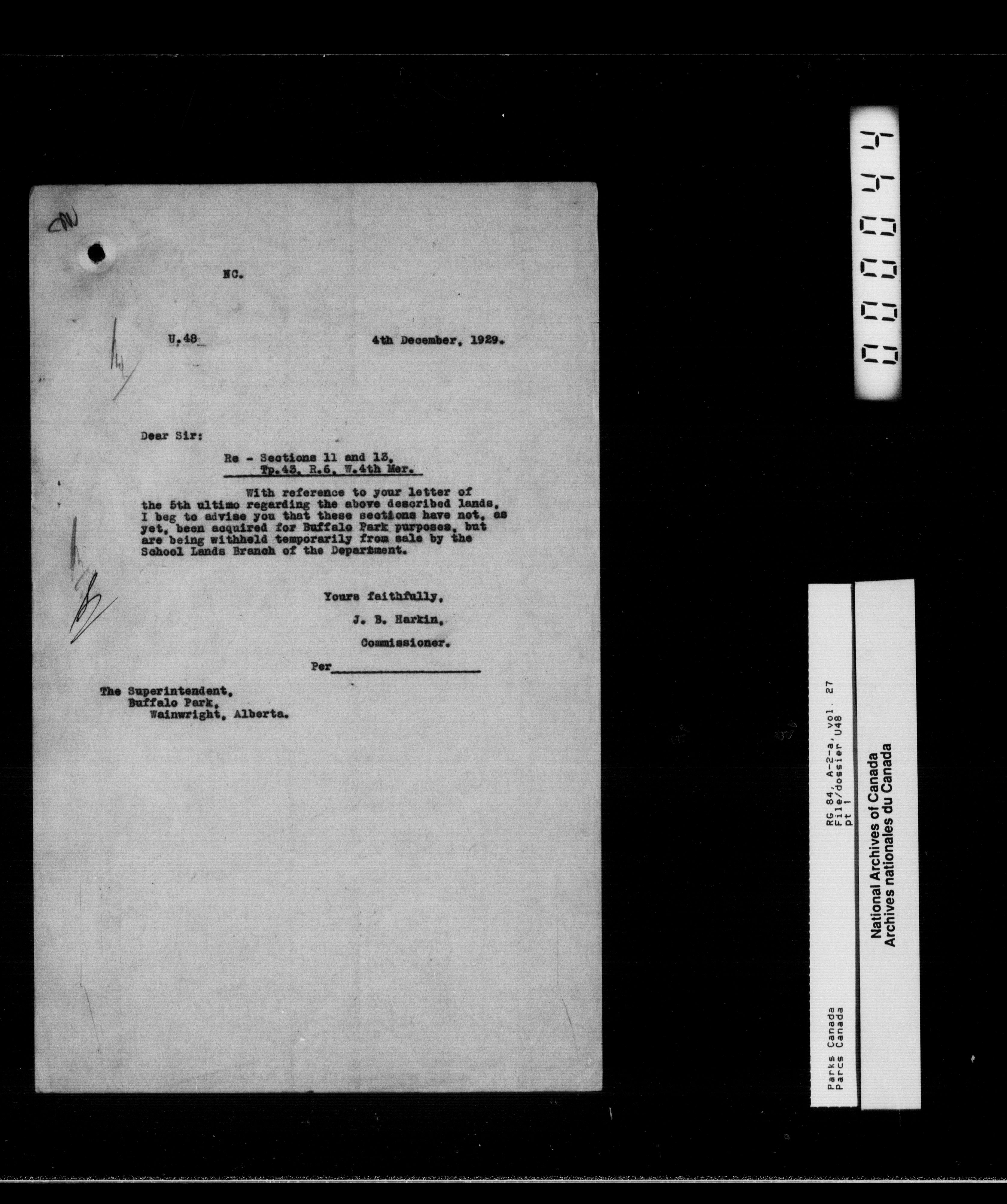 Department of Canadian Heritage, Canadian Parks Service : Park/subject classification system : T-12575