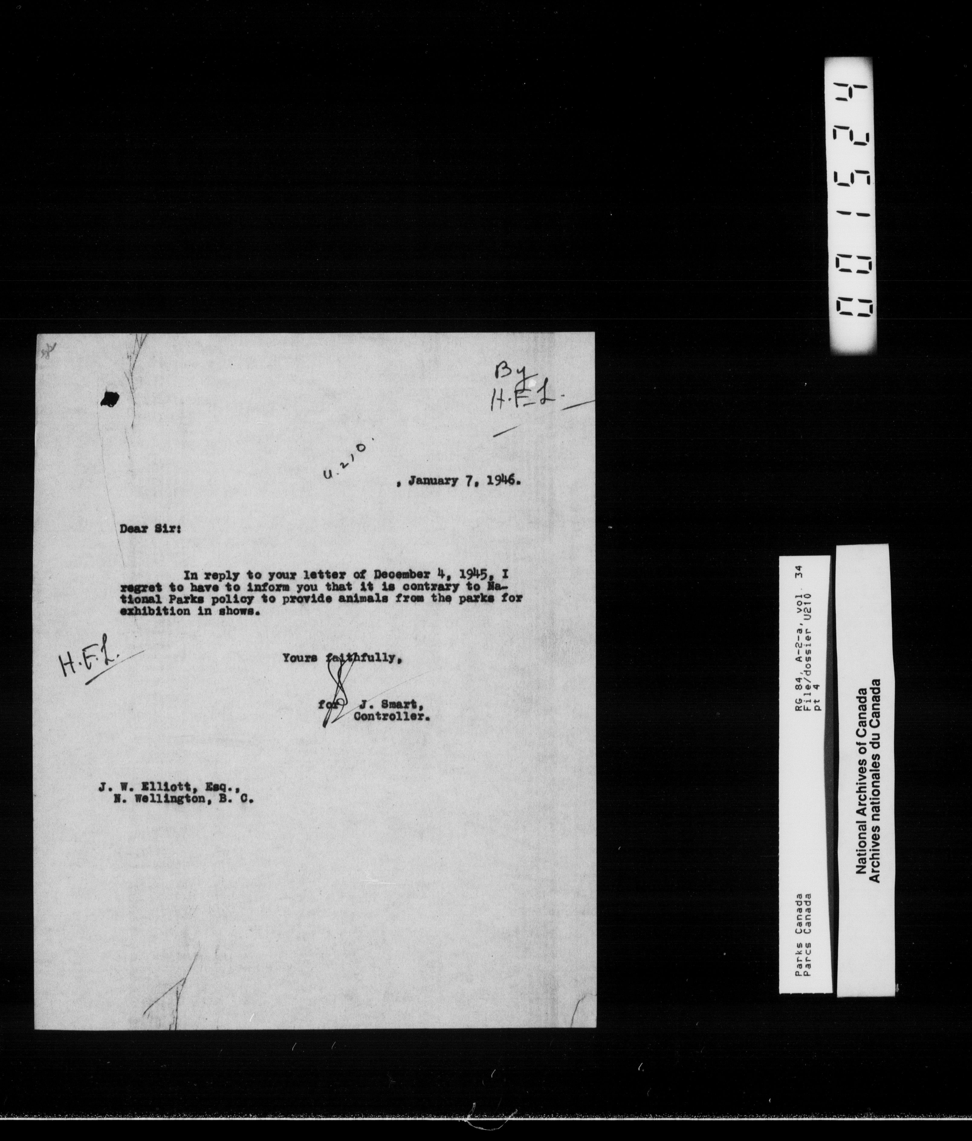 Department of Canadian Heritage, Canadian Parks Service : Park/subject classification system : T-12582