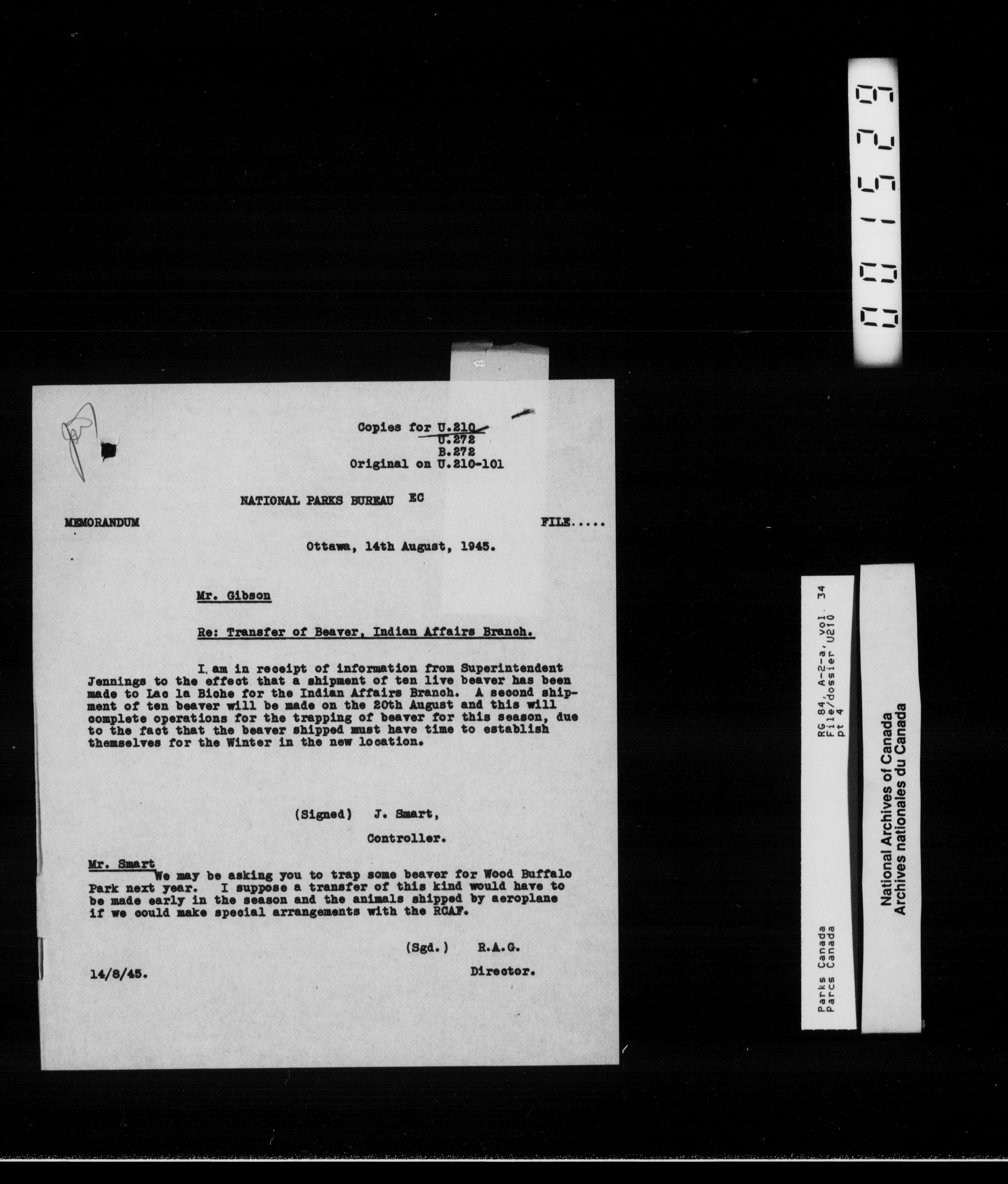 Department of Canadian Heritage, Canadian Parks Service : Park/subject classification system : T-12582