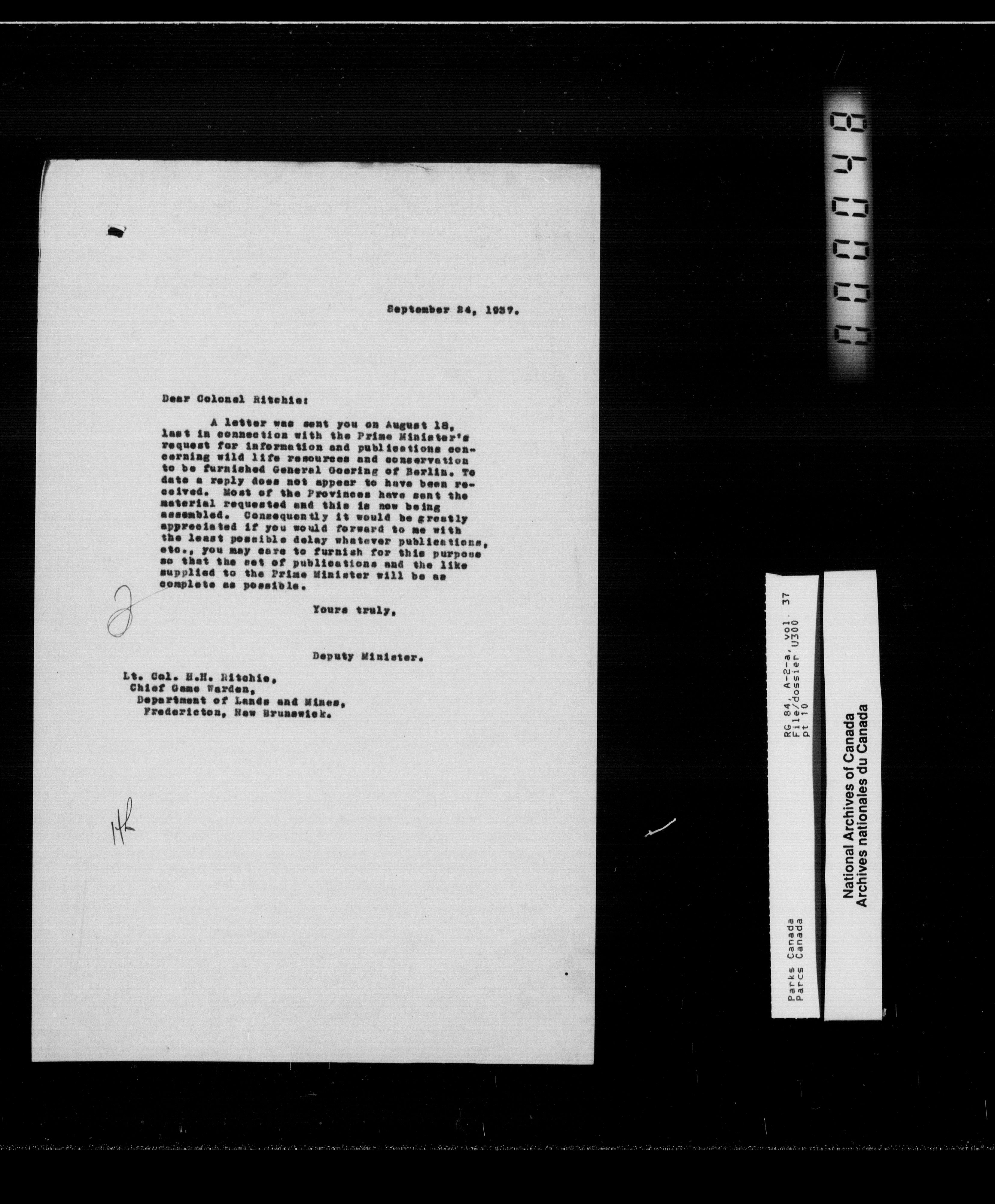 Department of Canadian Heritage, Canadian Parks Service : Park/subject classification system : T-12586