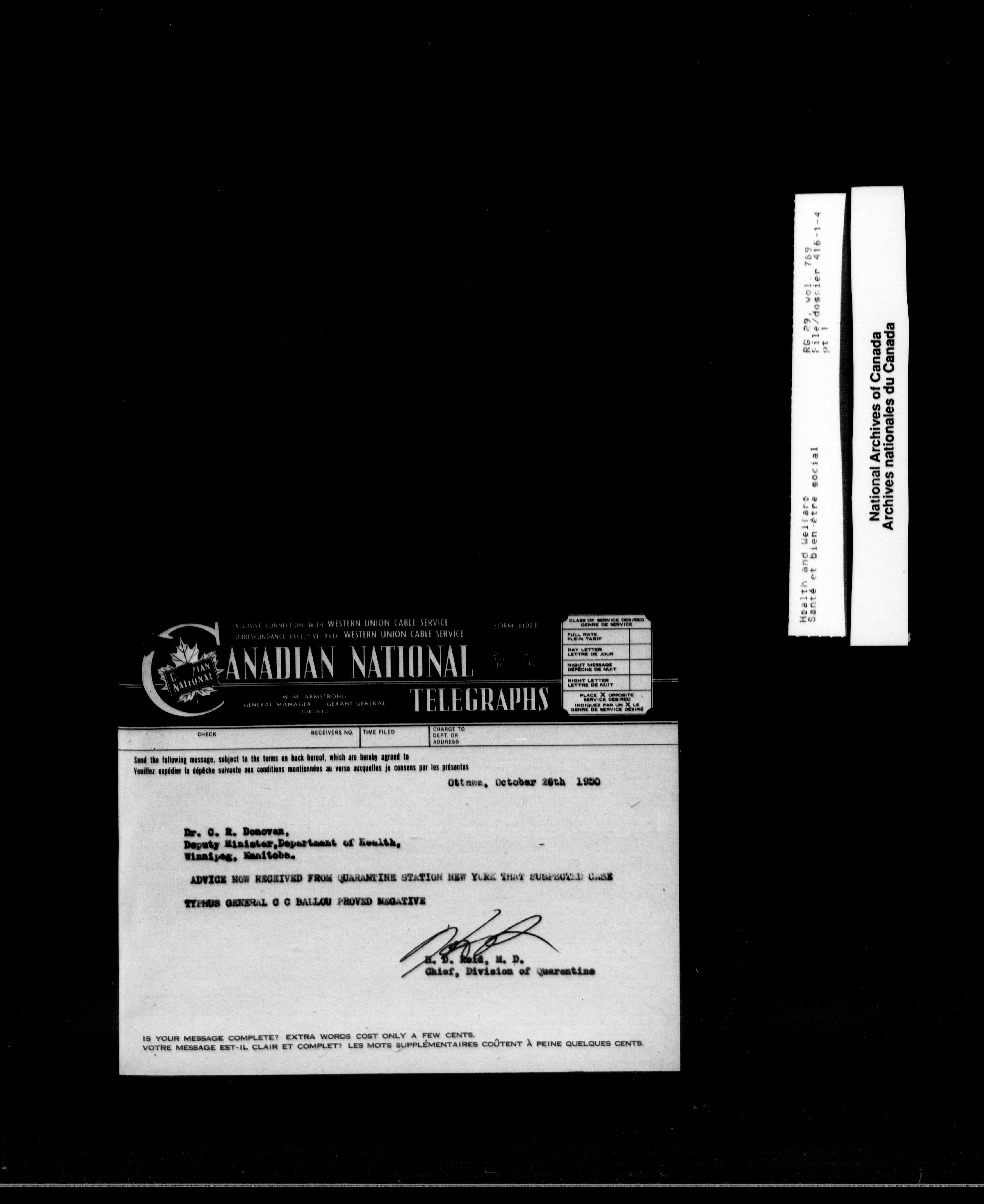 Records relating to the Quarantine Division, Immigration Medical Services and Sick Mariners Service - 12599