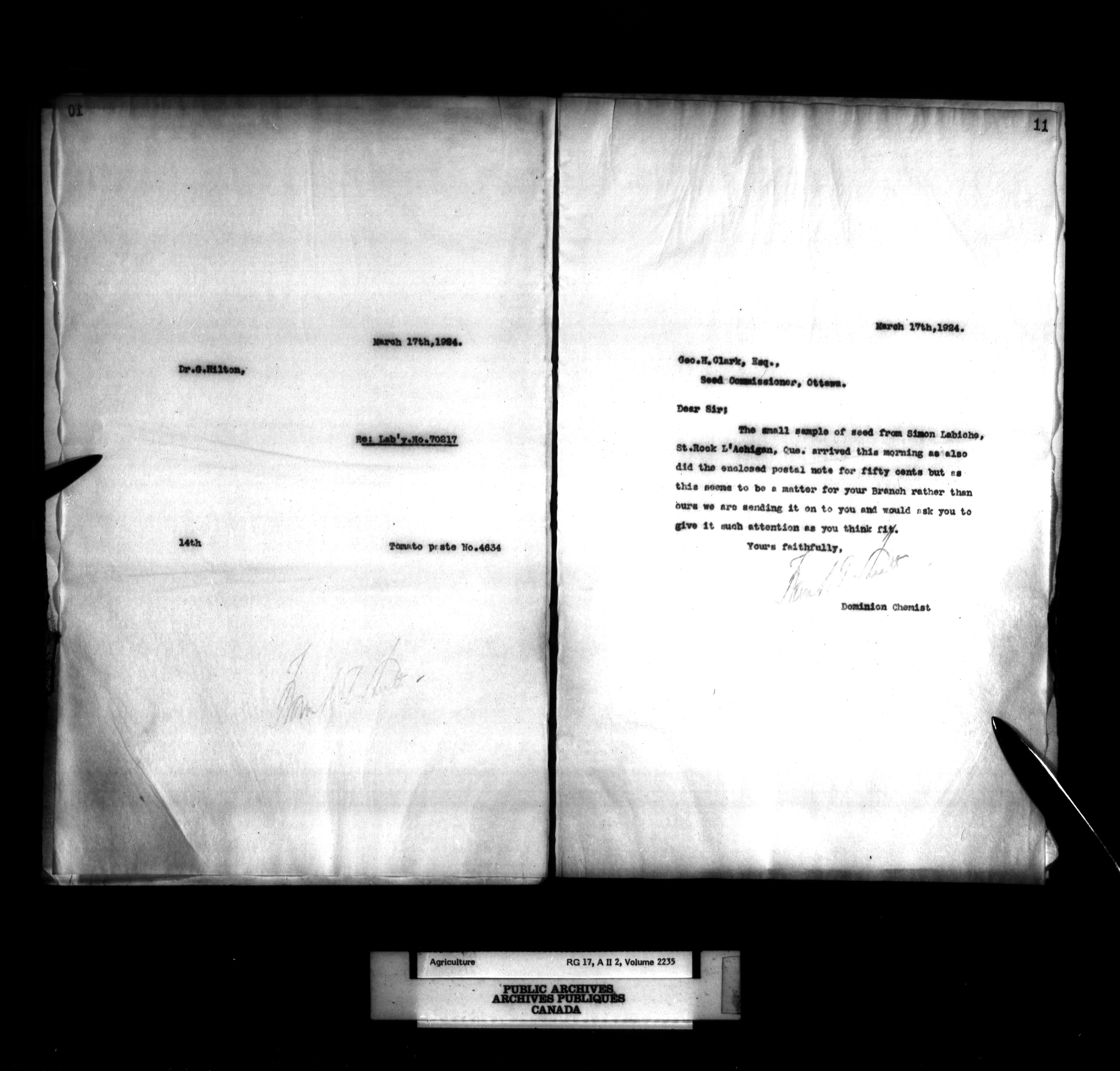 Department of Agriculture : Dominion Chemist, letterbooks - 1260