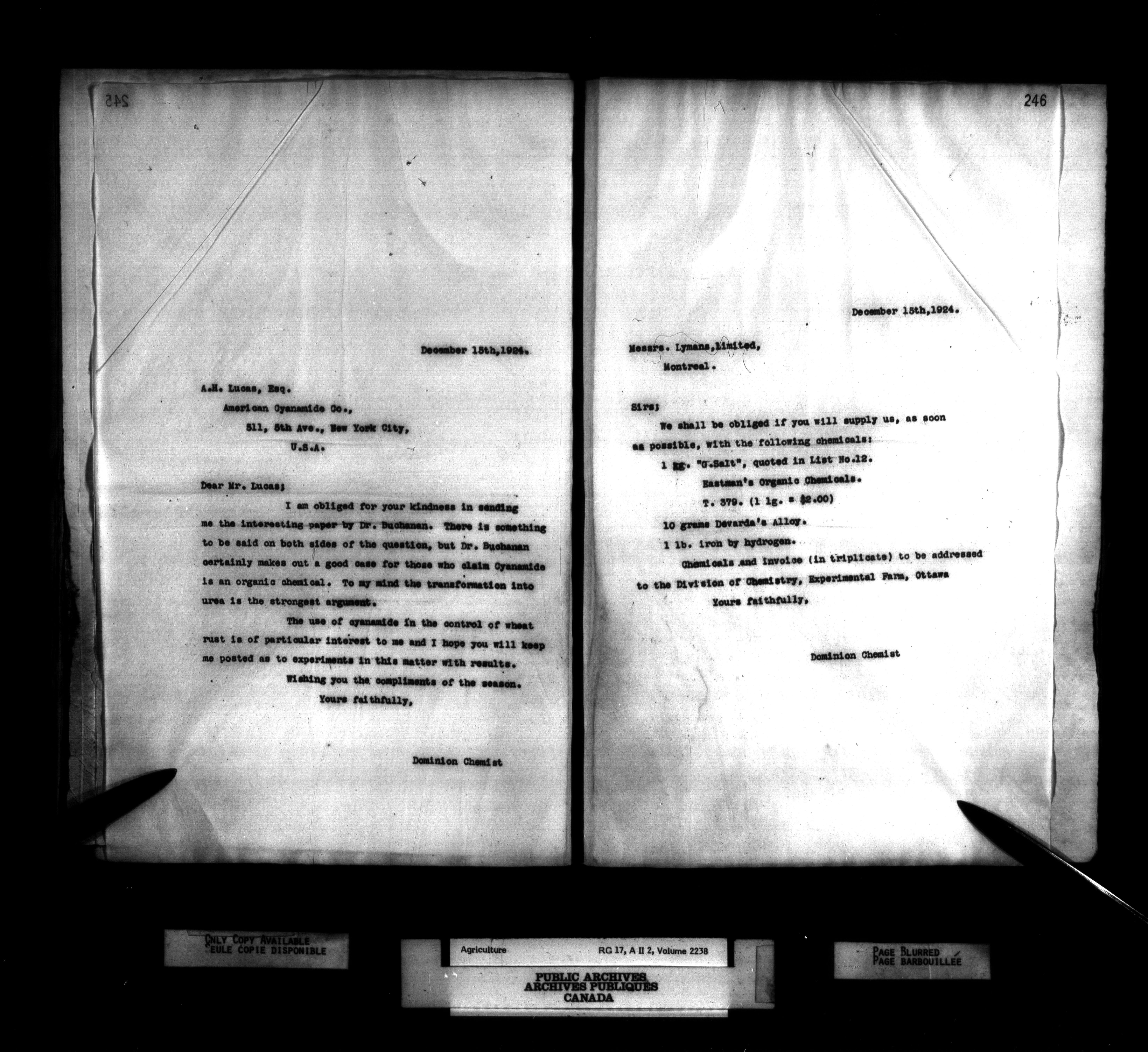Department of Agriculture : Dominion Chemist, letterbooks - 1261