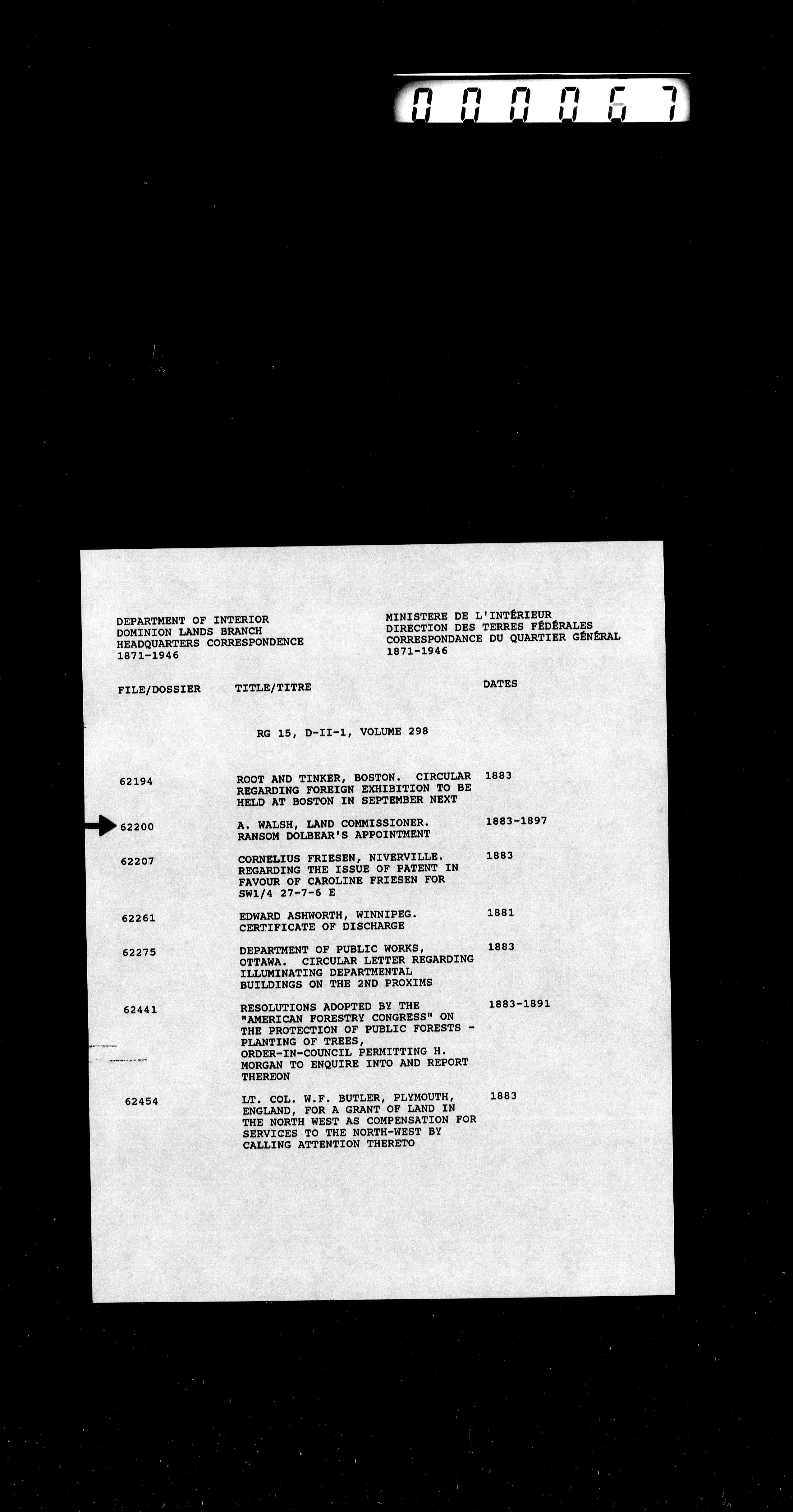Central registry subject files created by the Dominion Lands Branch - 12610