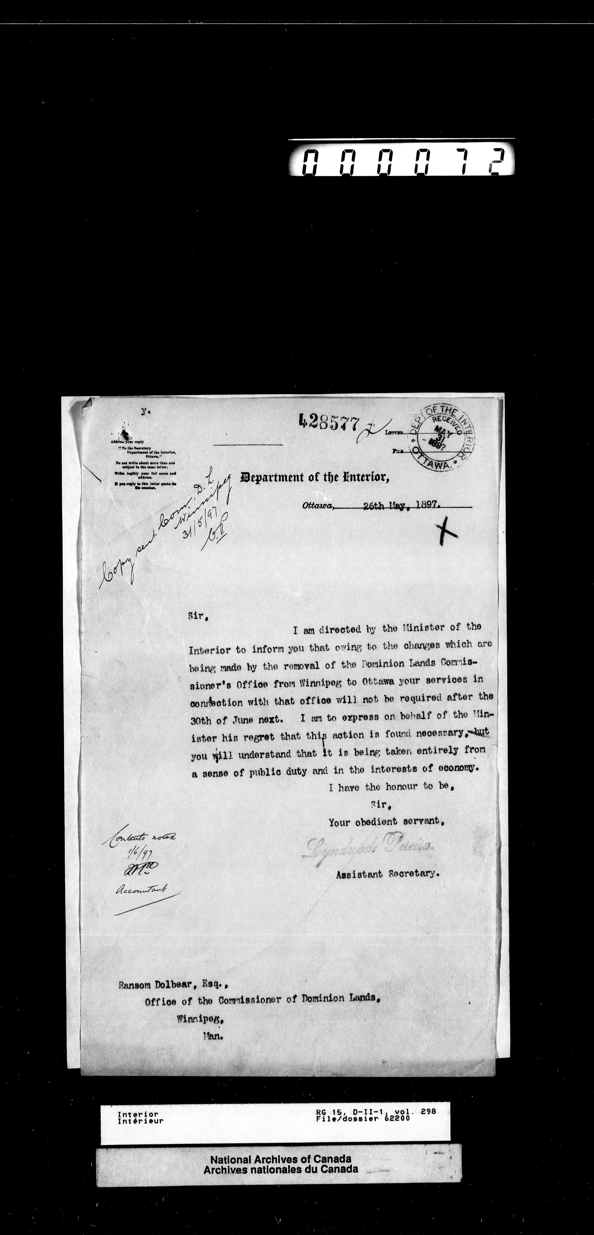 Central registry subject files created by the Dominion Lands Branch - 12610