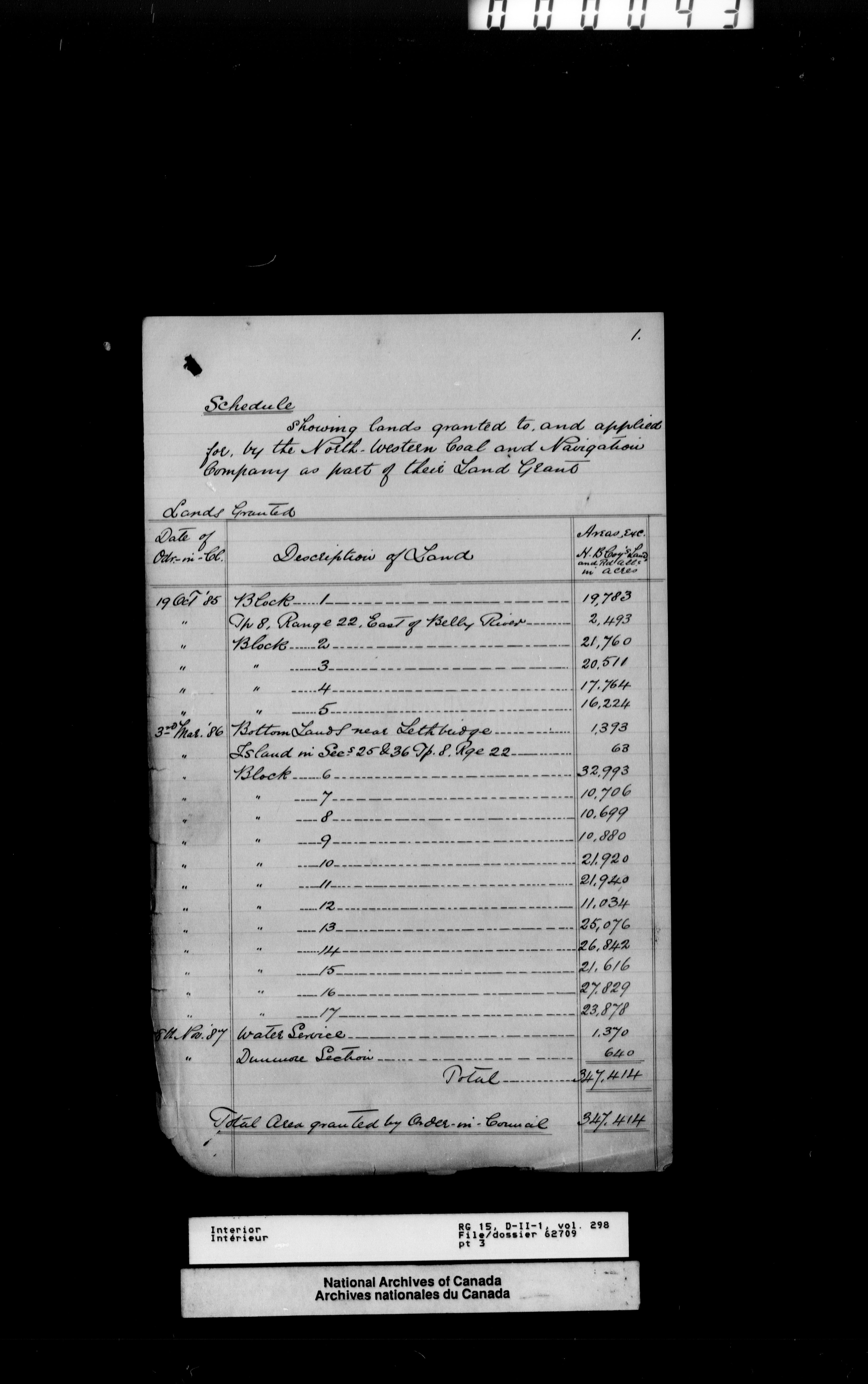 Central registry subject files created by the Dominion Lands Branch - 12611
