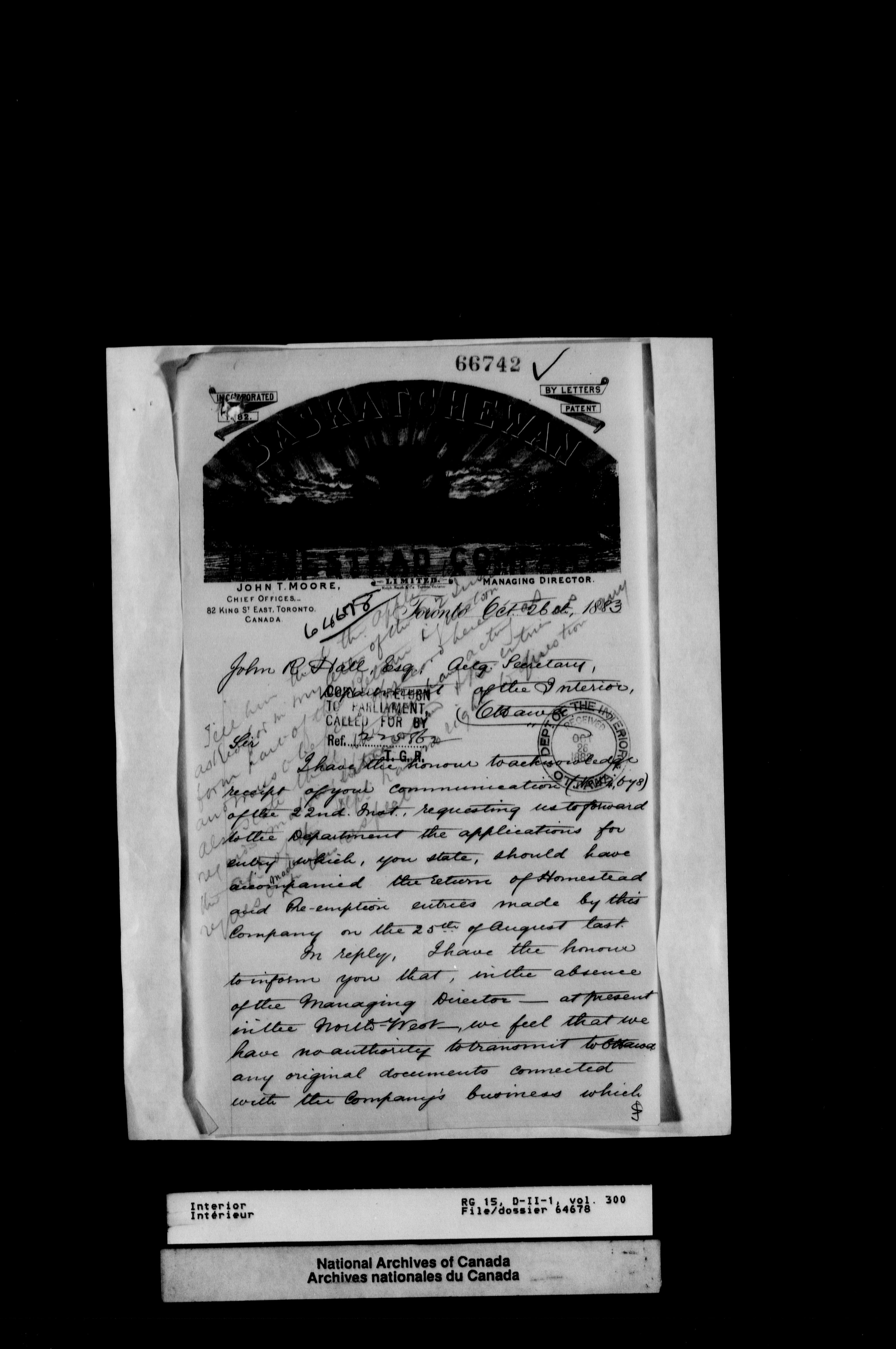 Central registry subject files created by the Dominion Lands Branch - 12612