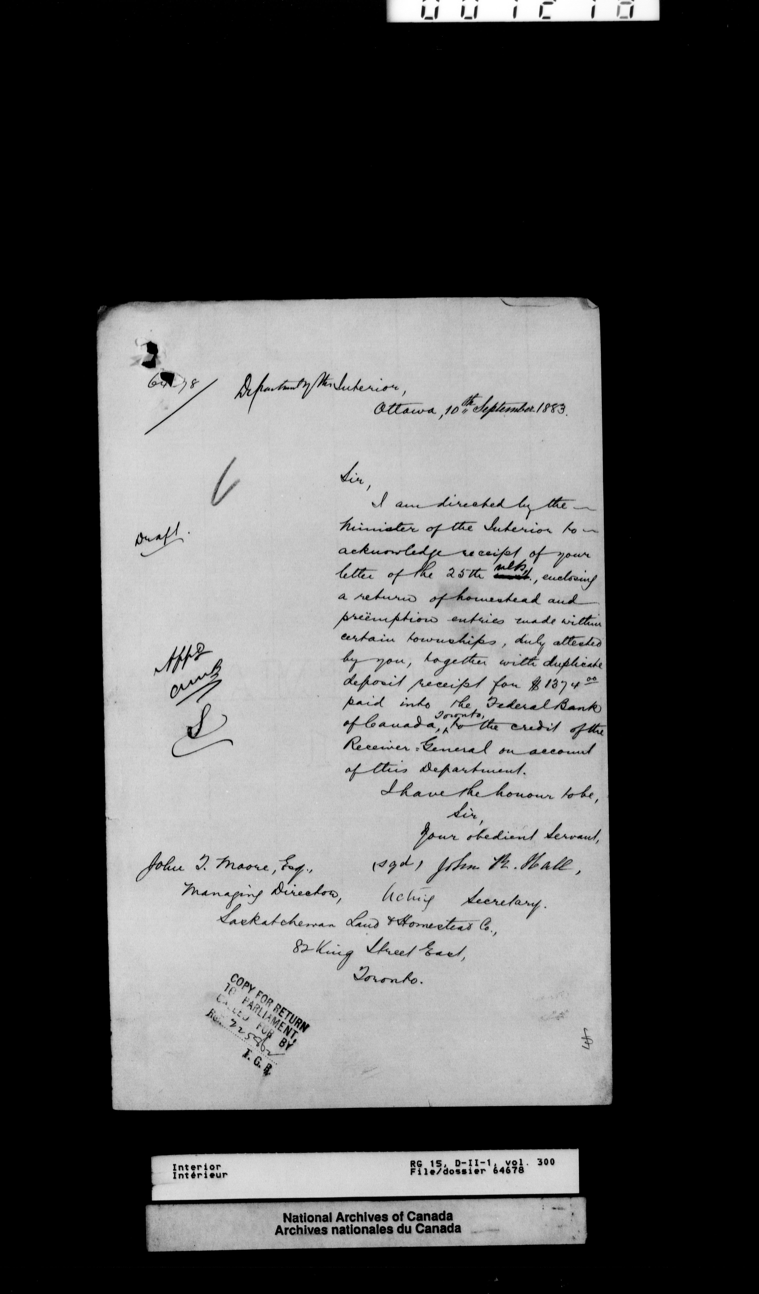 Central registry subject files created by the Dominion Lands Branch - 12612
