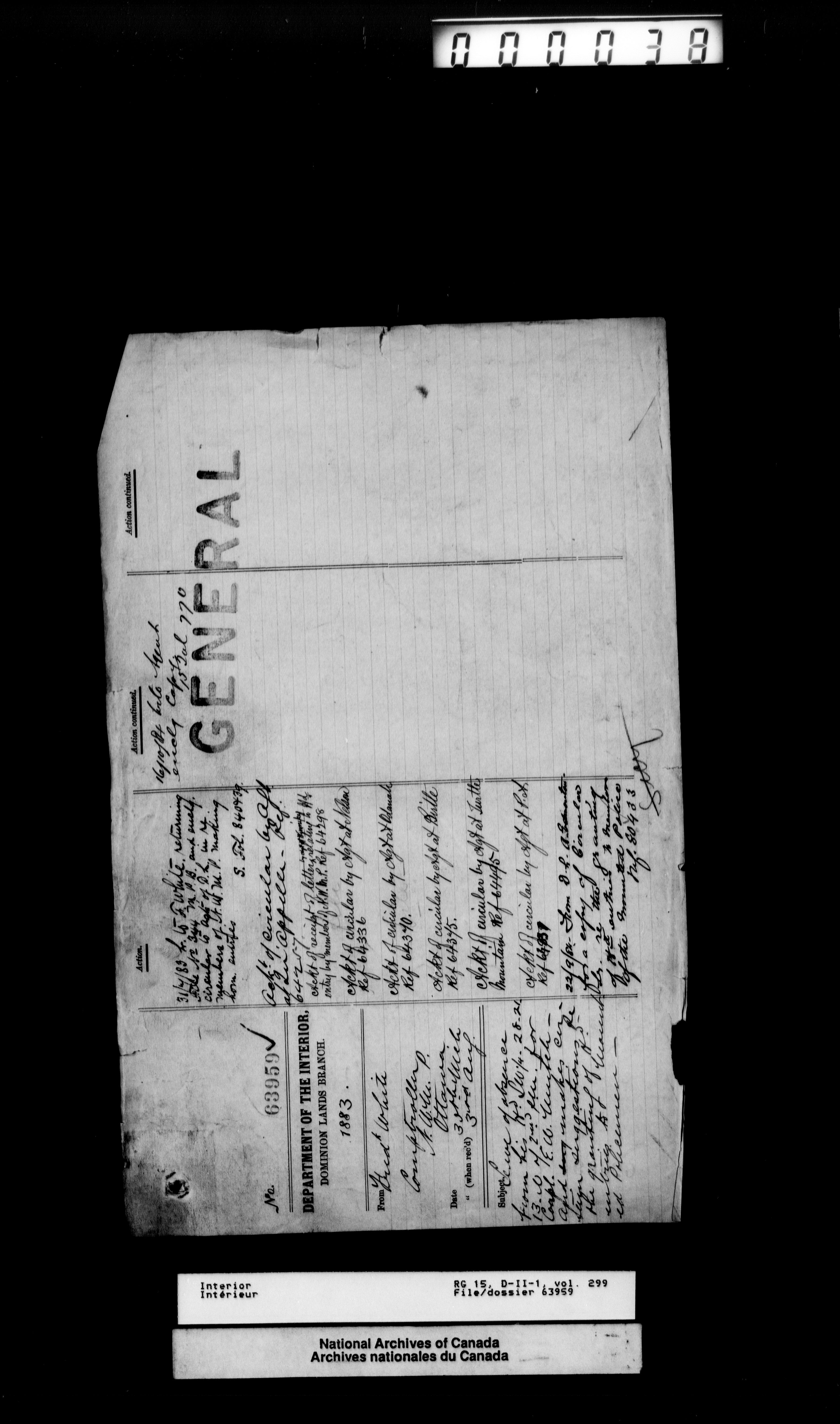 Central registry subject files created by the Dominion Lands Branch - 12612