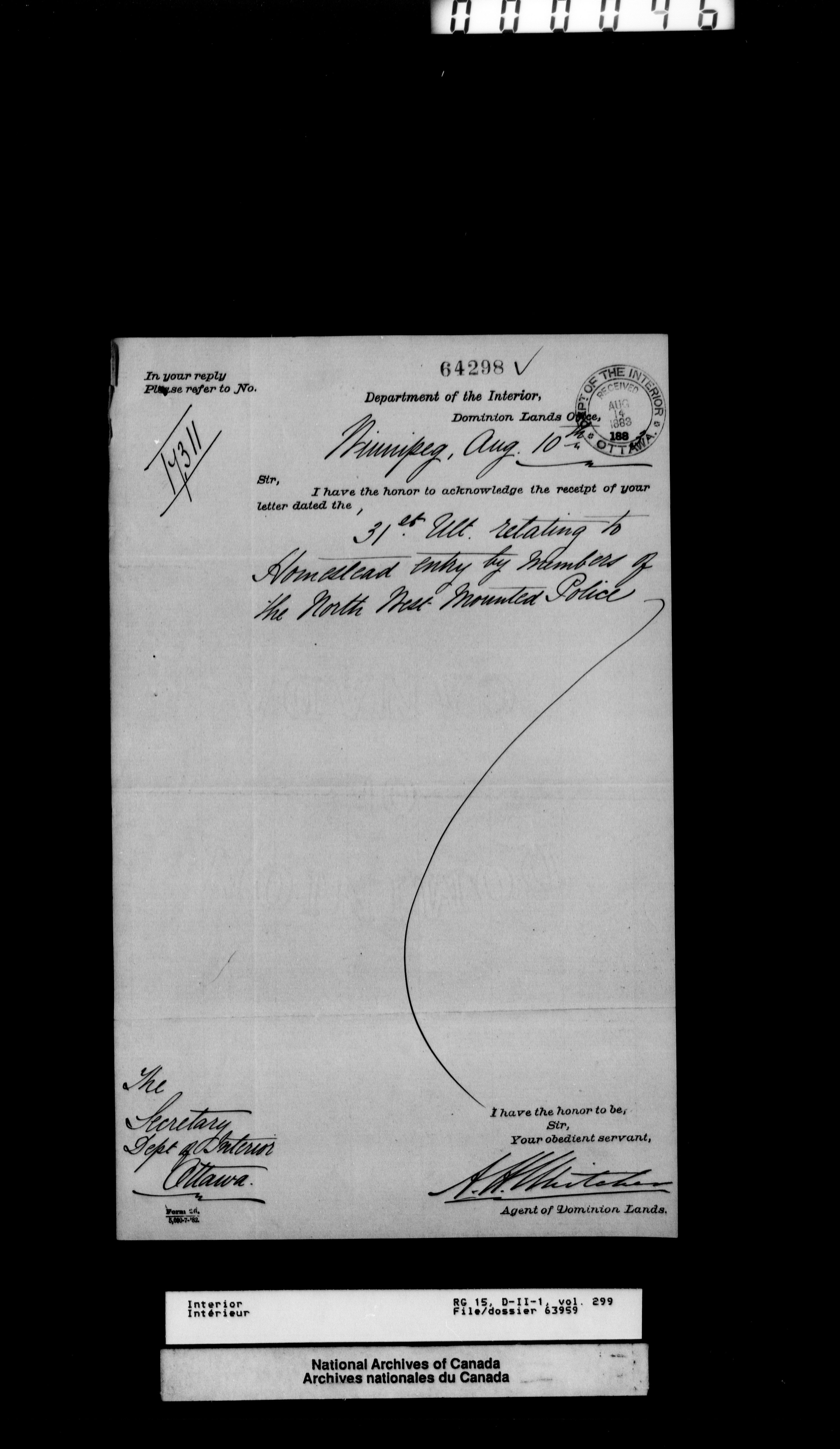 Central registry subject files created by the Dominion Lands Branch - 12612