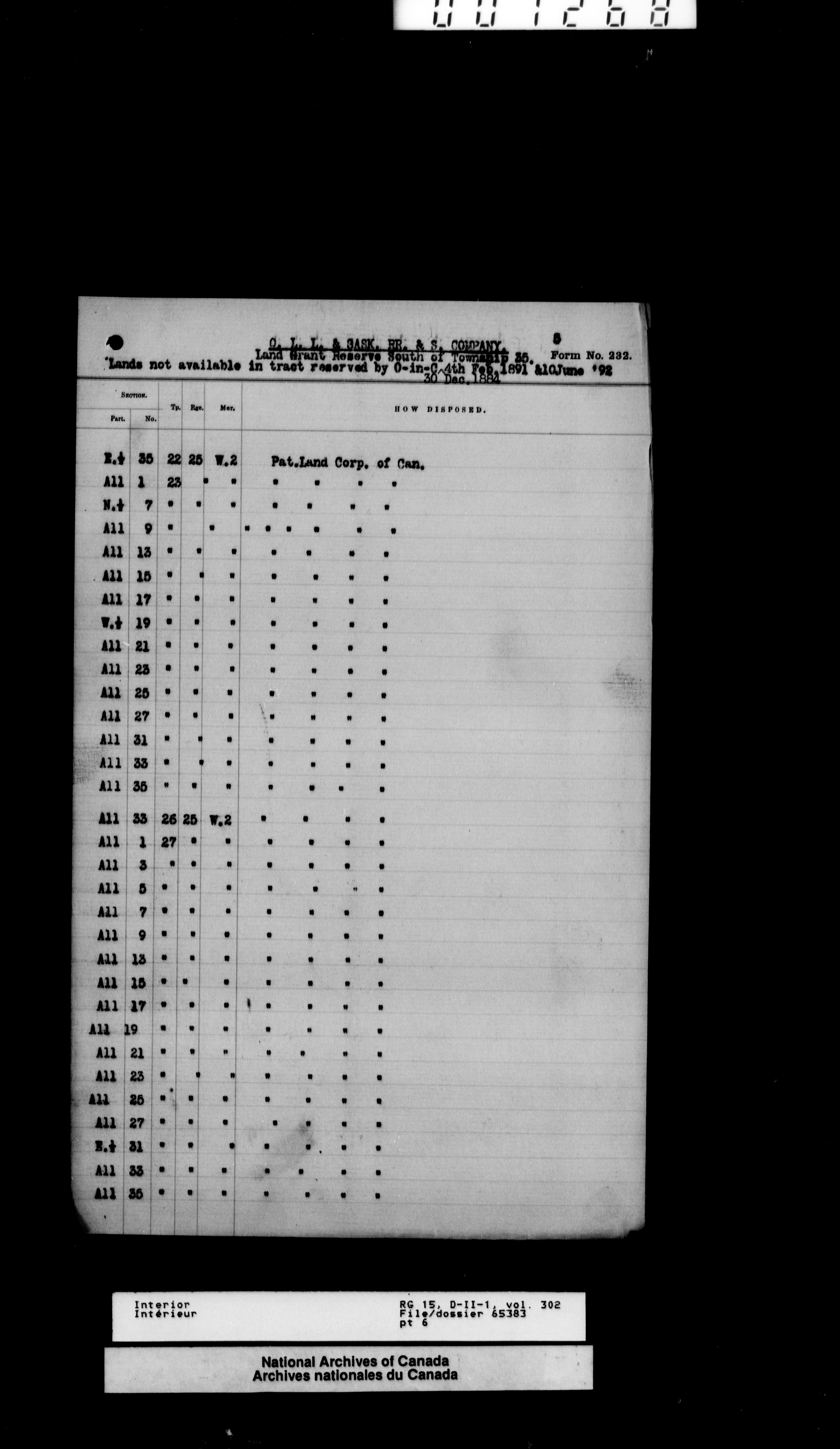 Central registry subject files created by the Dominion Lands Branch - 12615