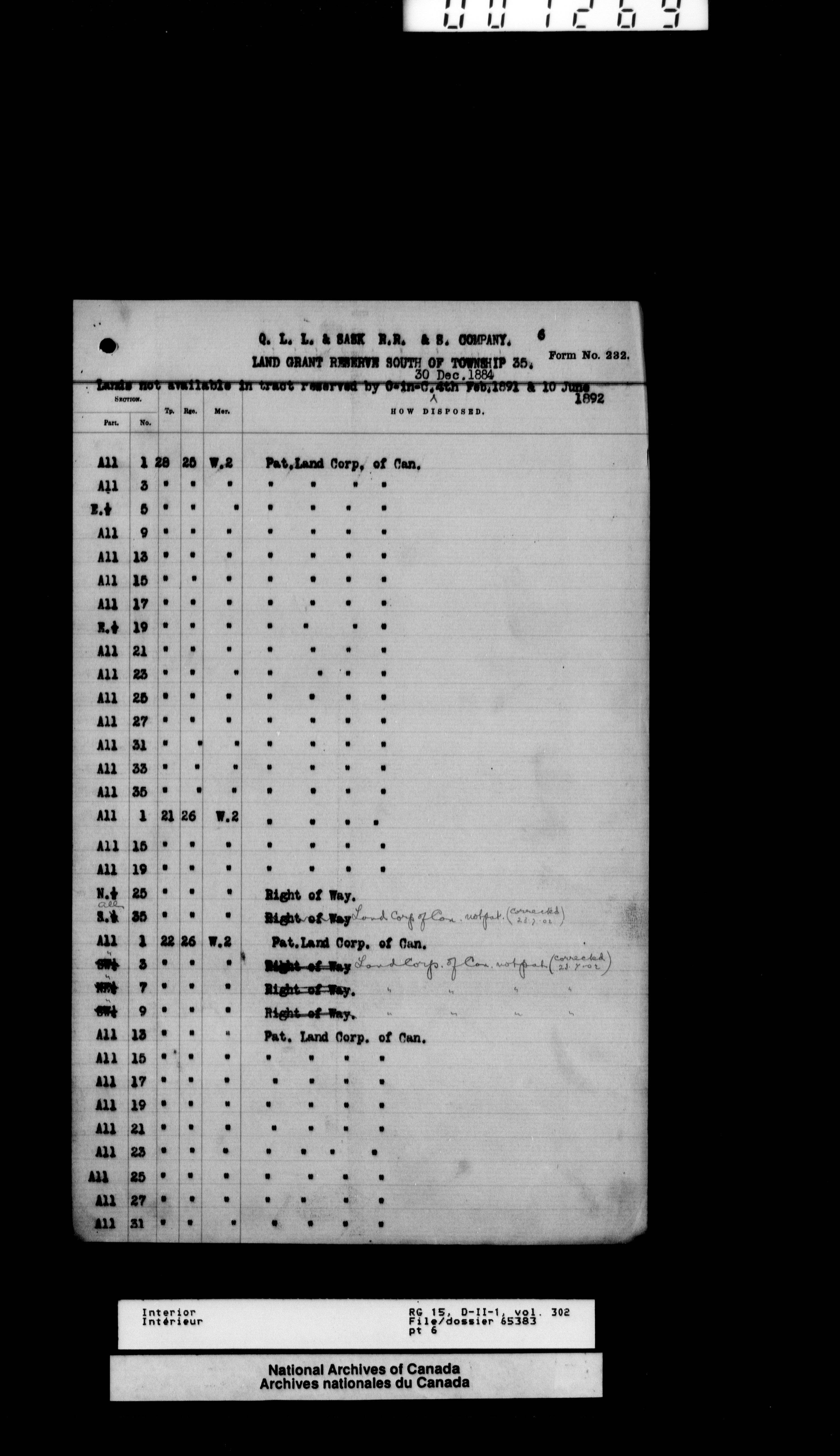 Central registry subject files created by the Dominion Lands Branch - 12615