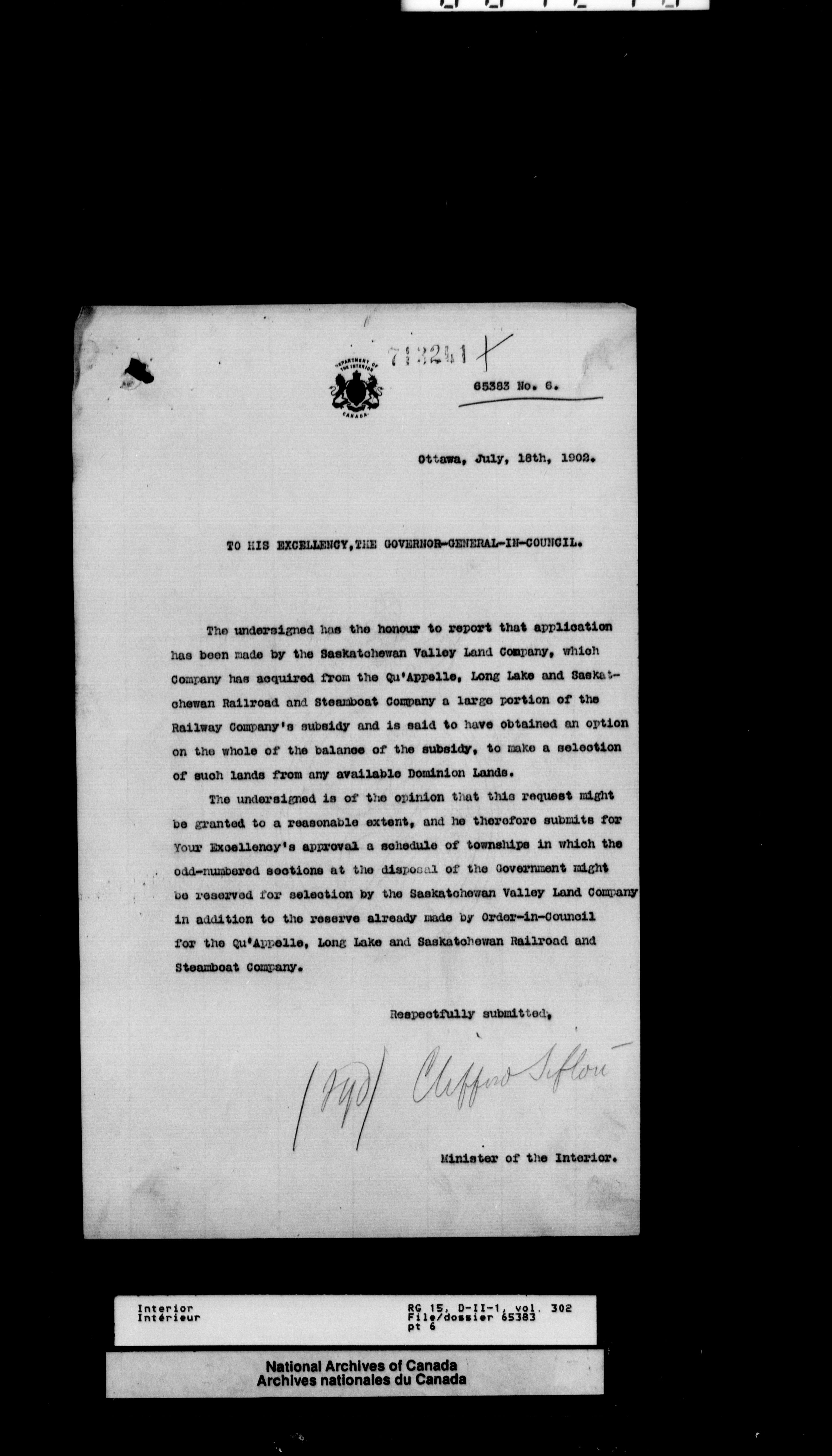 Central registry subject files created by the Dominion Lands Branch - 12615