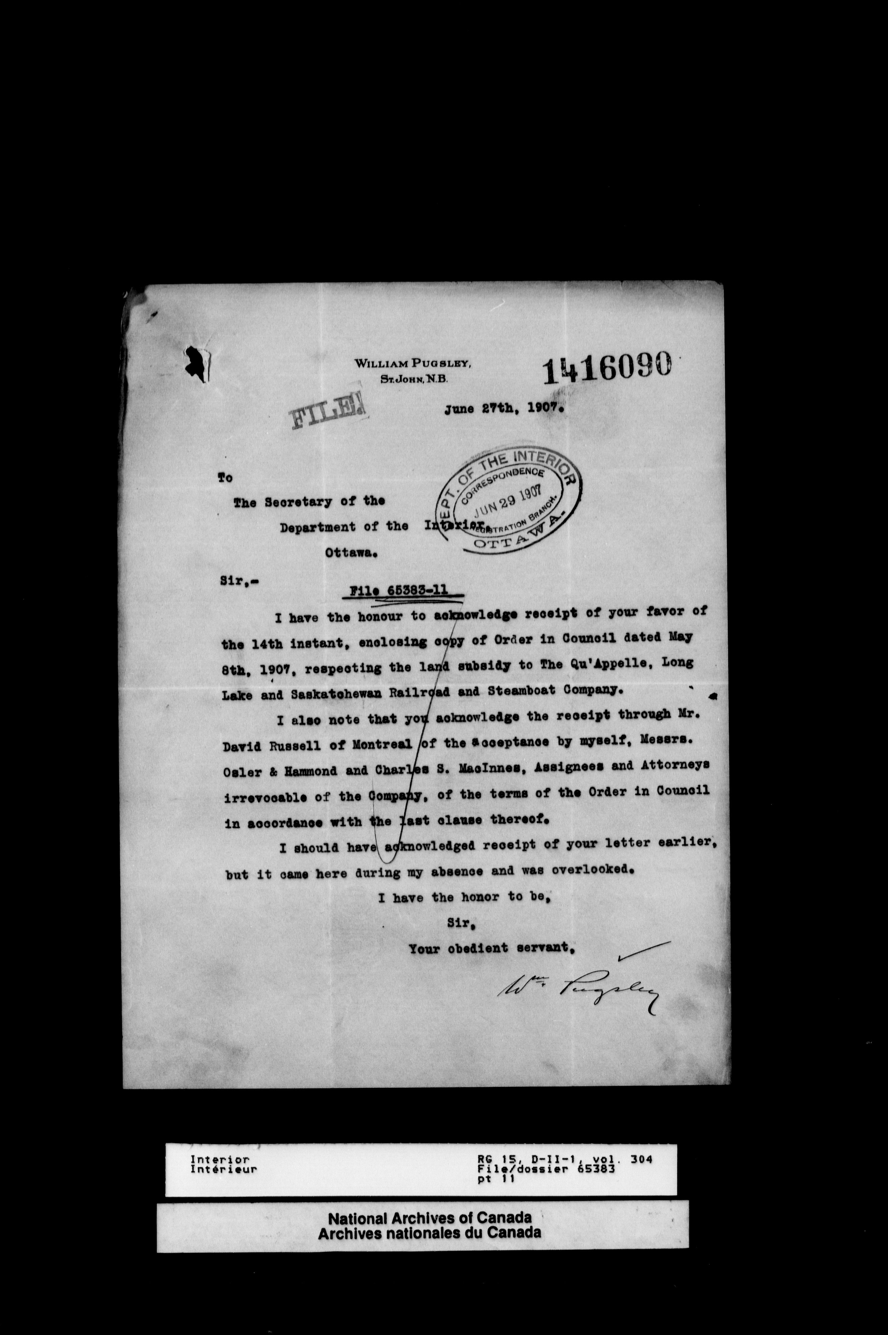 Central registry subject files created by the Dominion Lands Branch - 12617