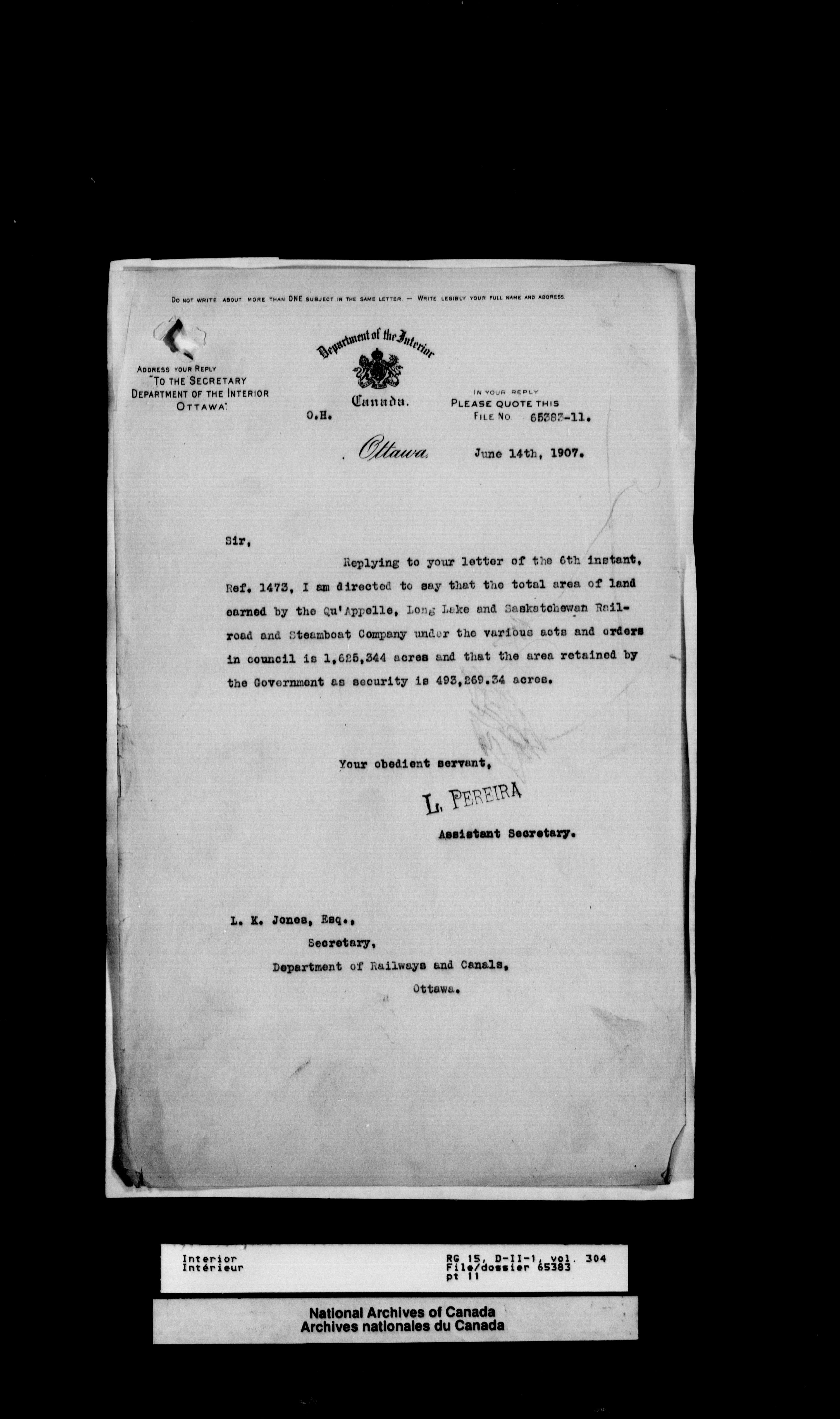 Central registry subject files created by the Dominion Lands Branch - 12617