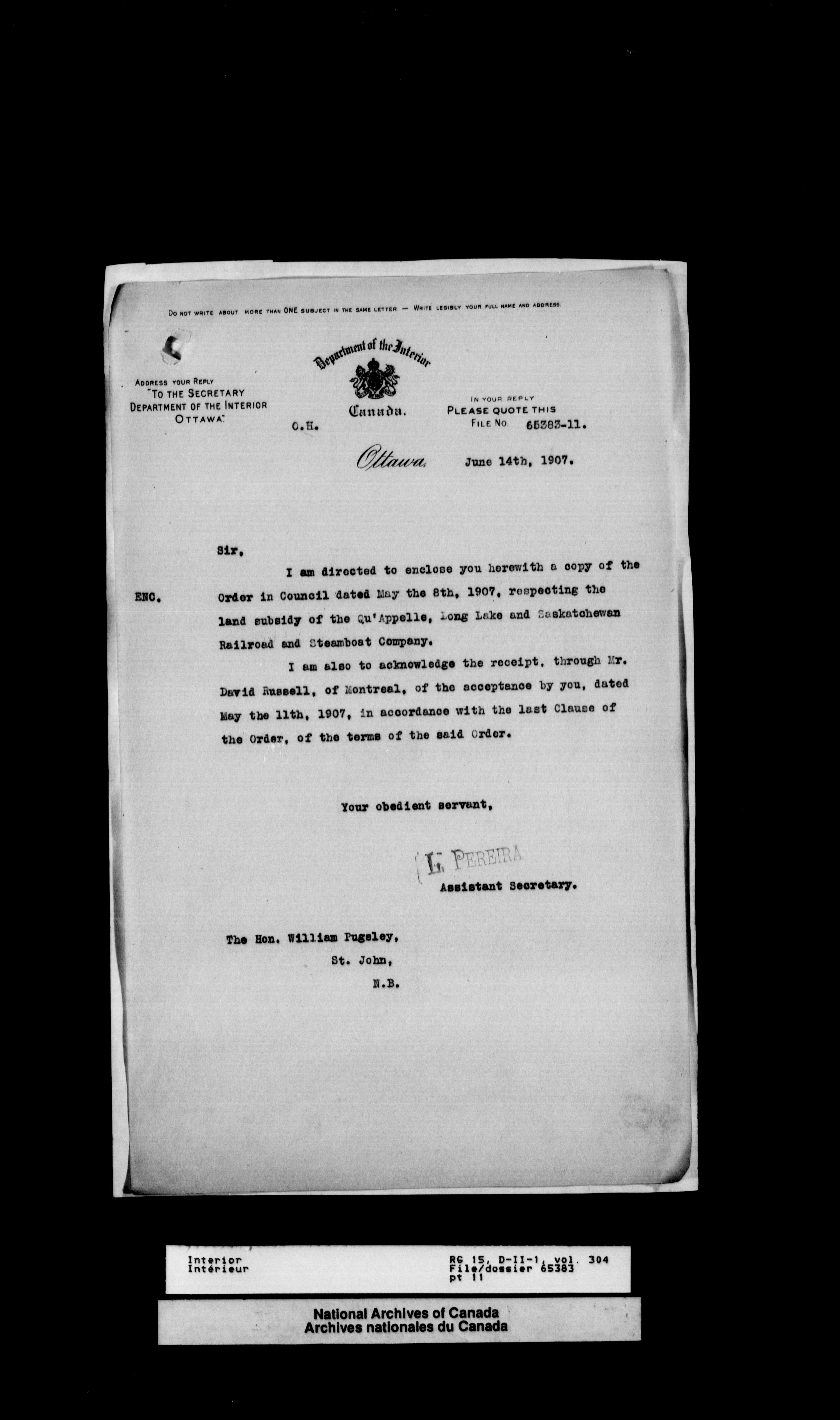 Central registry subject files created by the Dominion Lands Branch - 12617