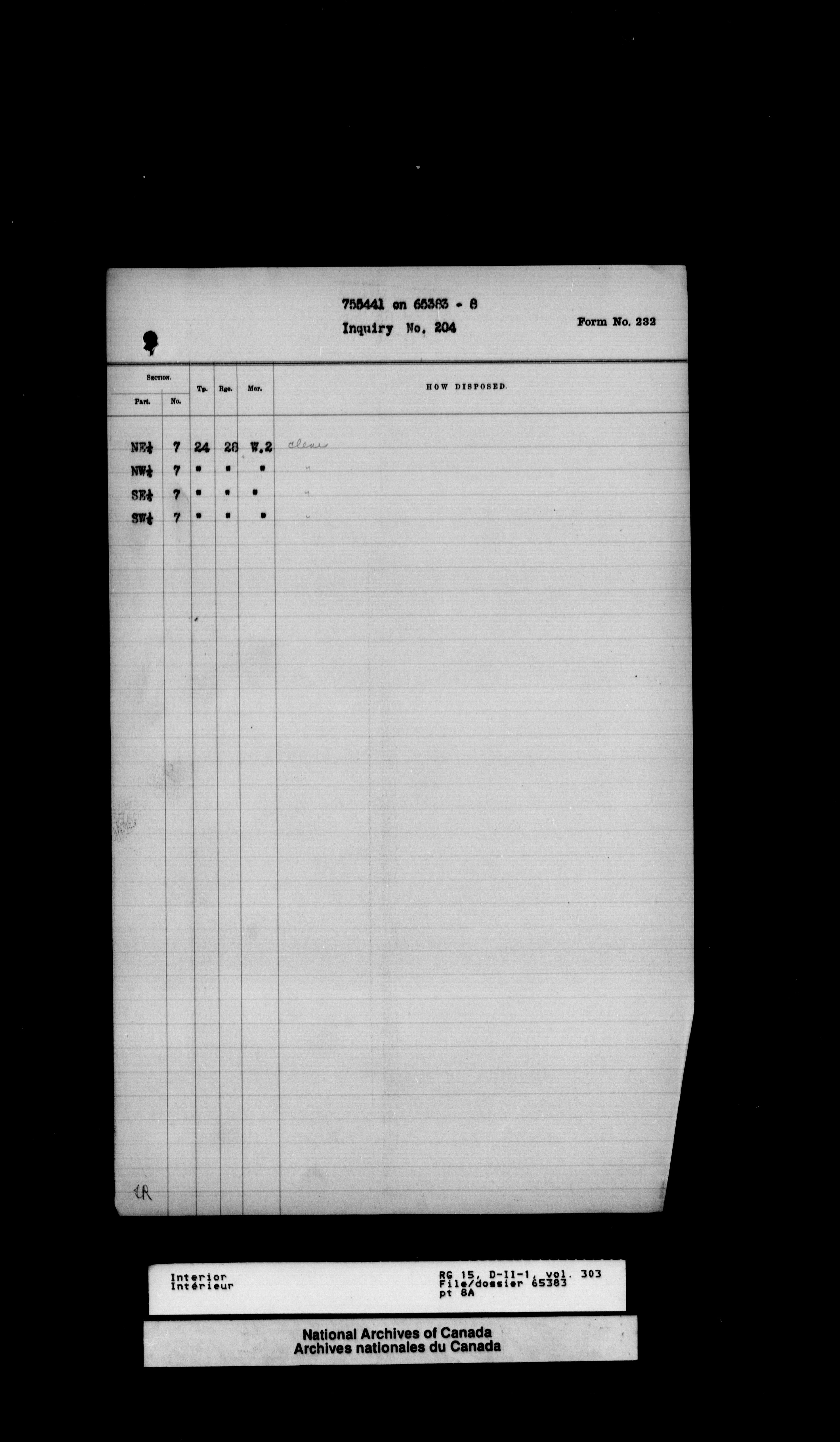 Central registry subject files created by the Dominion Lands Branch - 12617