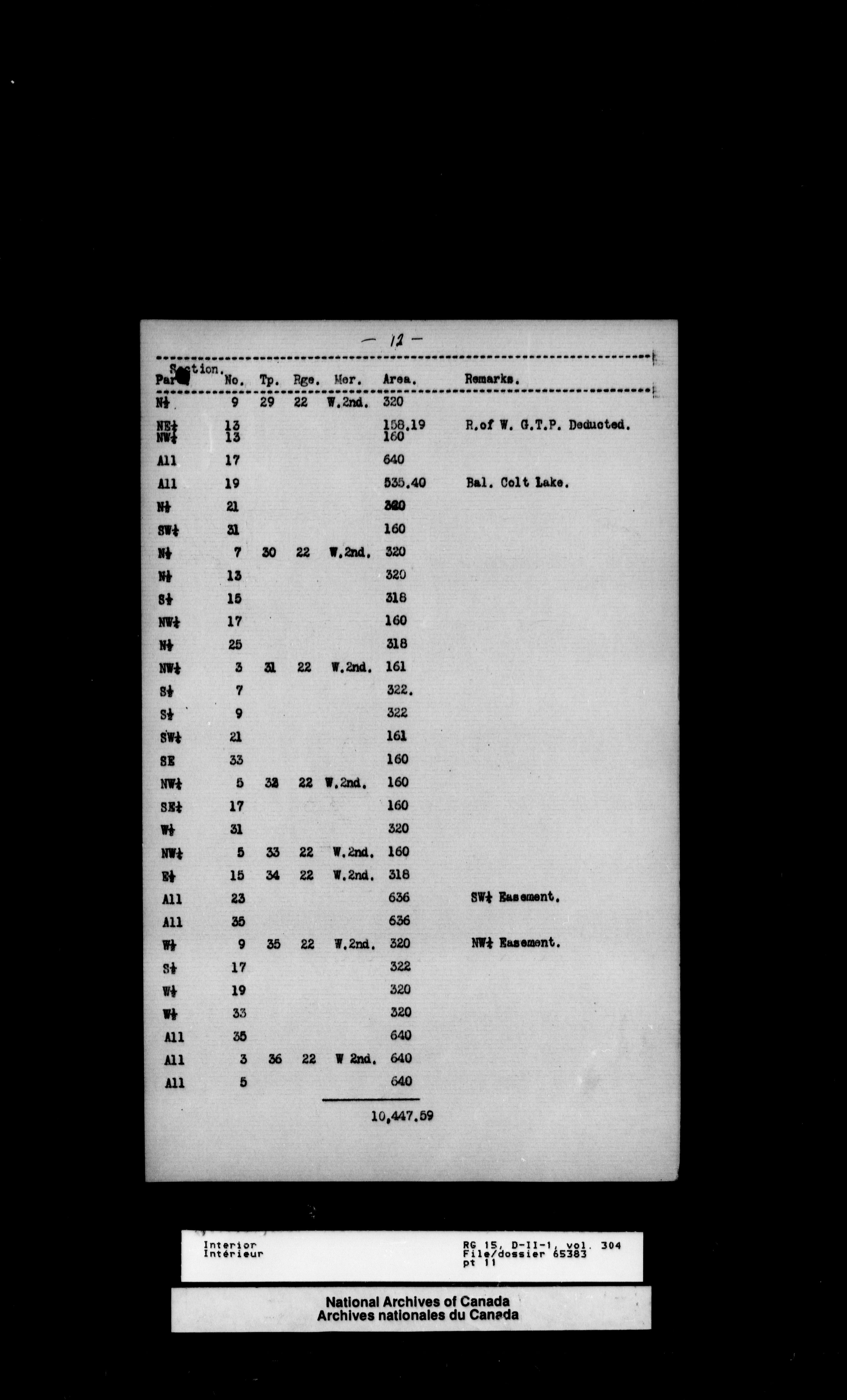 Central registry subject files created by the Dominion Lands Branch - 12618