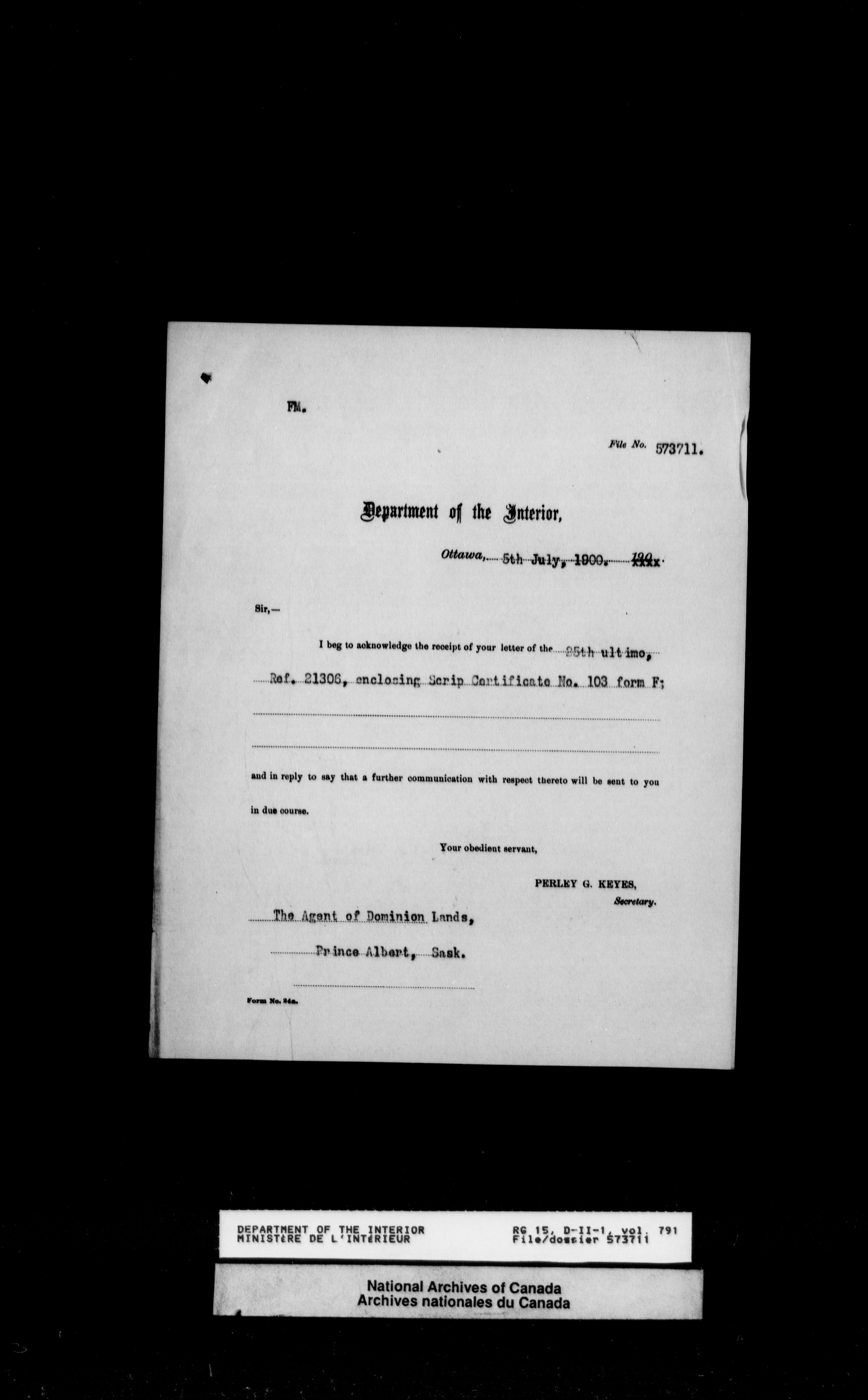 Central registry subject files created by the Dominion Lands Branch - 12620