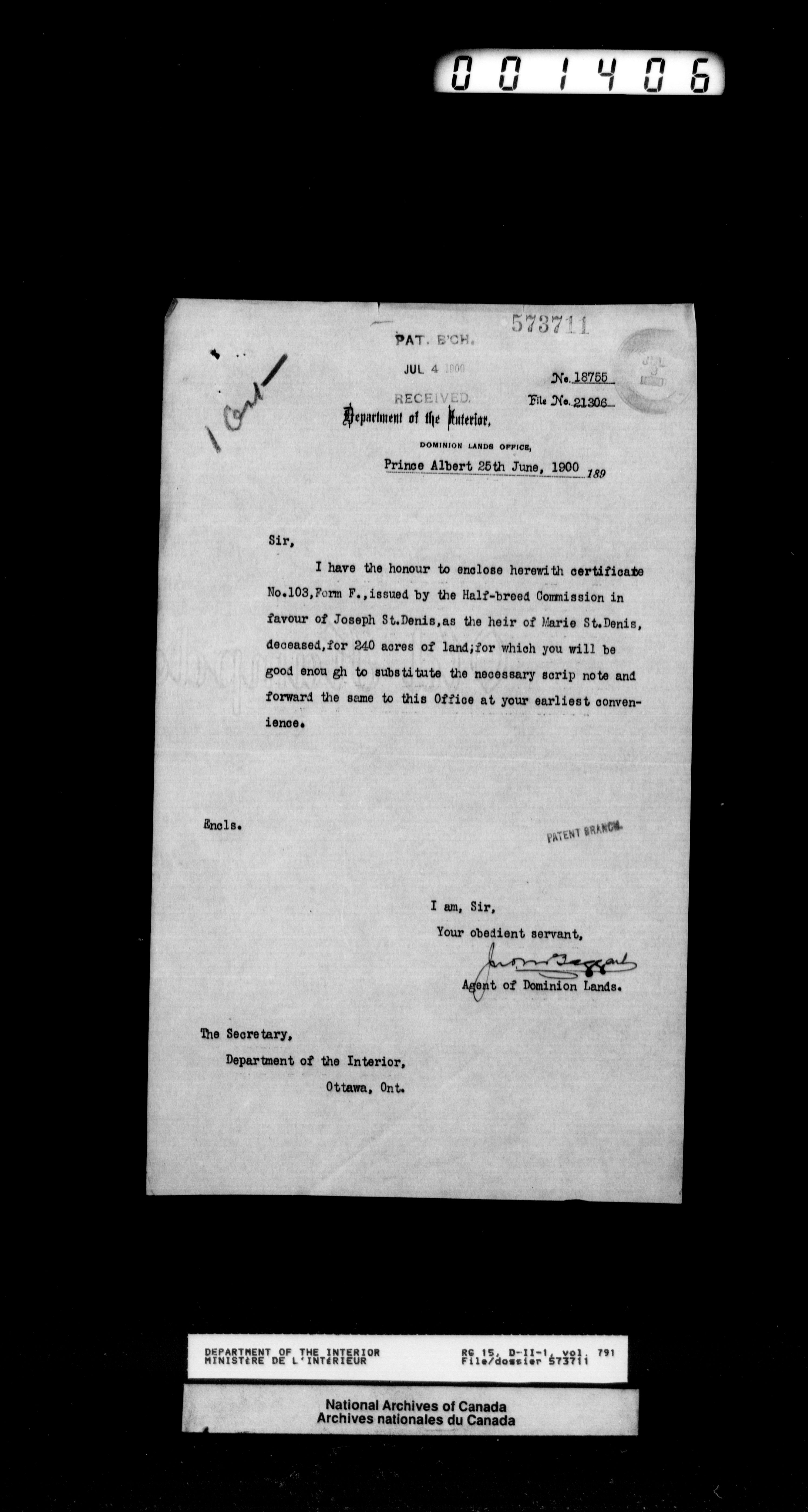 Central registry subject files created by the Dominion Lands Branch - 12620