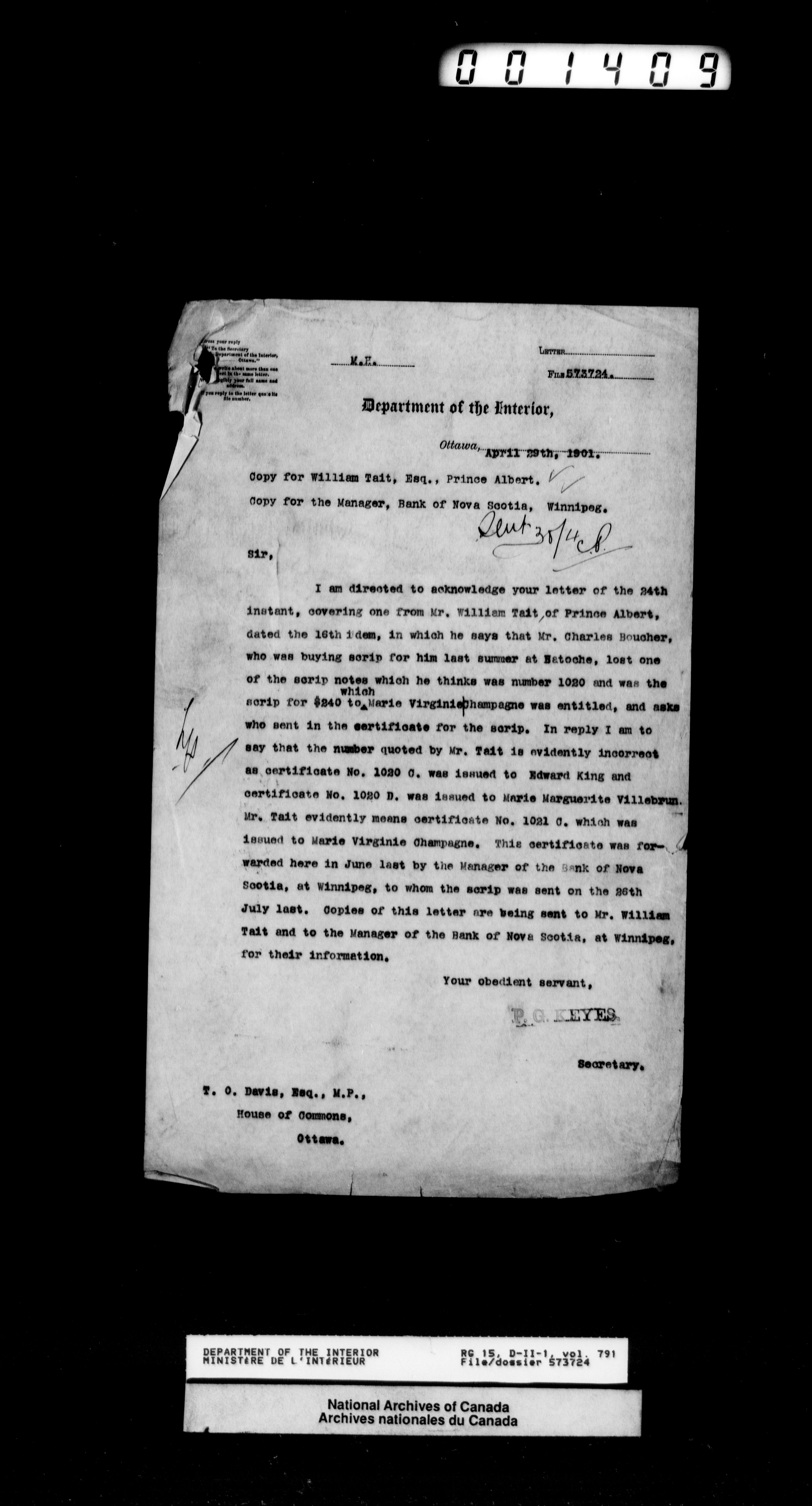 Central registry subject files created by the Dominion Lands Branch - 12620
