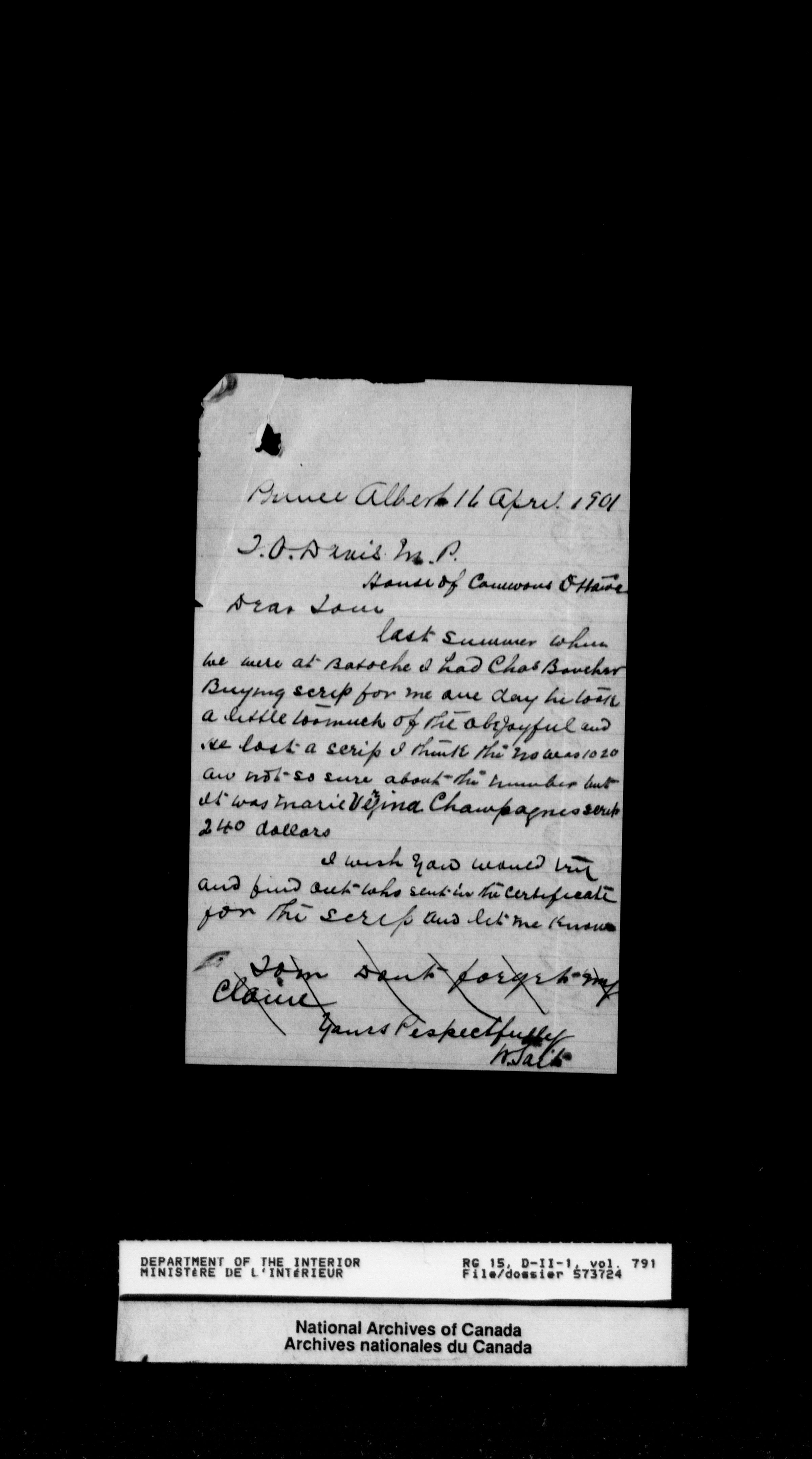 Central registry subject files created by the Dominion Lands Branch - 12620