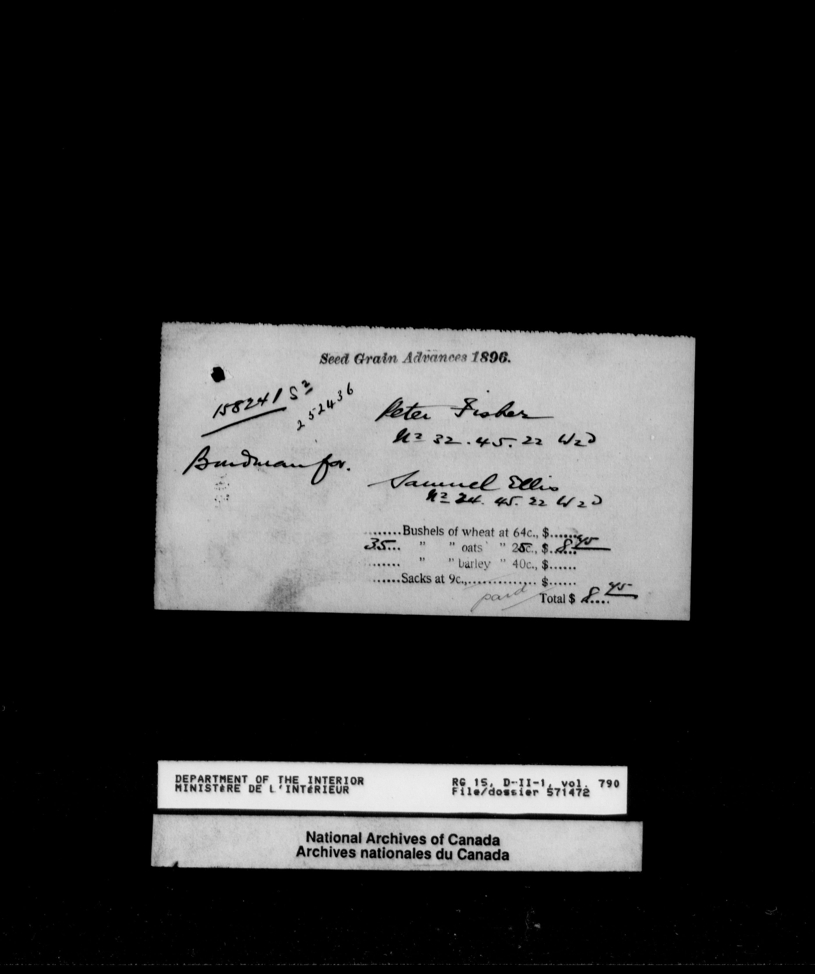Central registry subject files created by the Dominion Lands Branch - 12620
