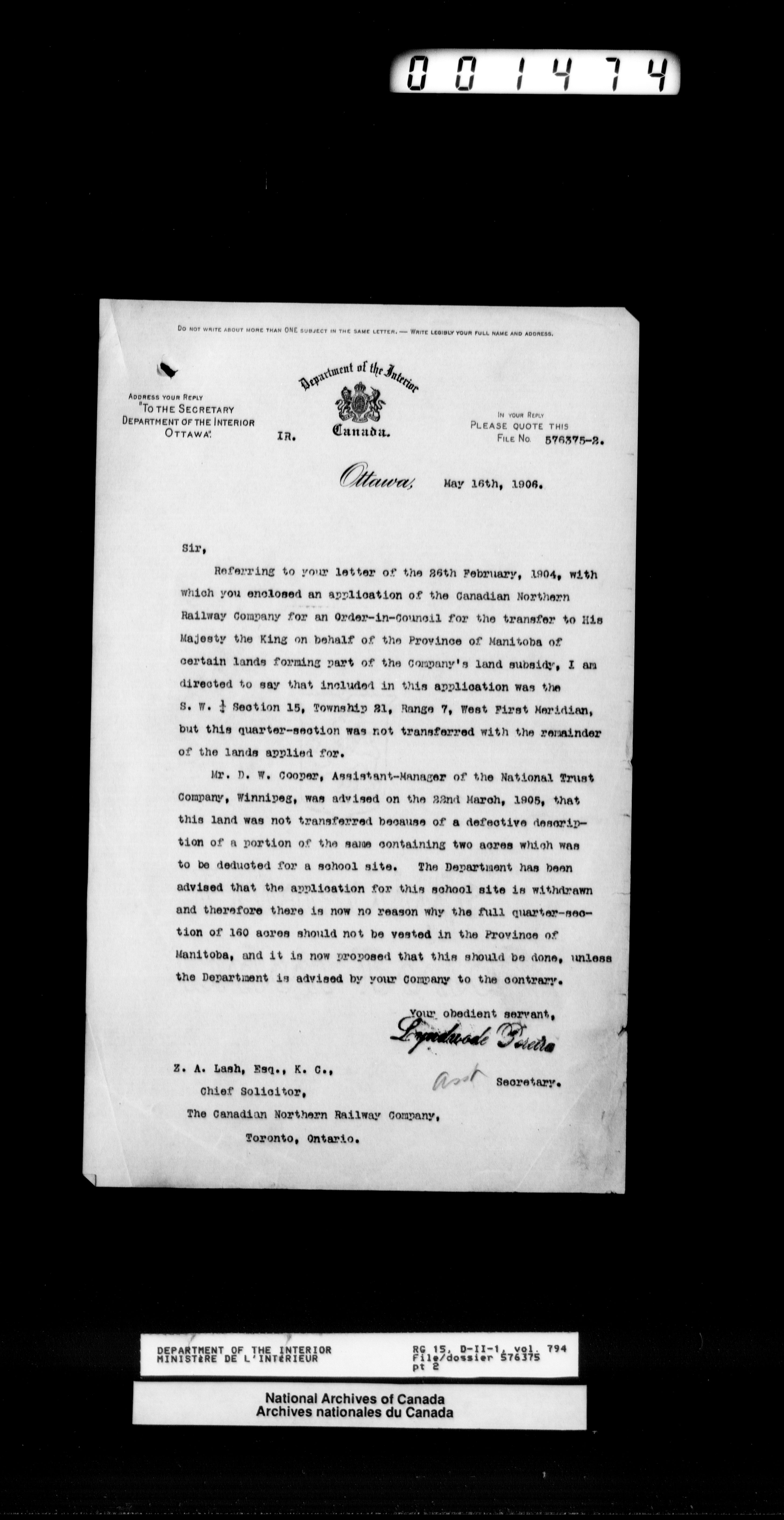 Central registry subject files created by the Dominion Lands Branch - 12622