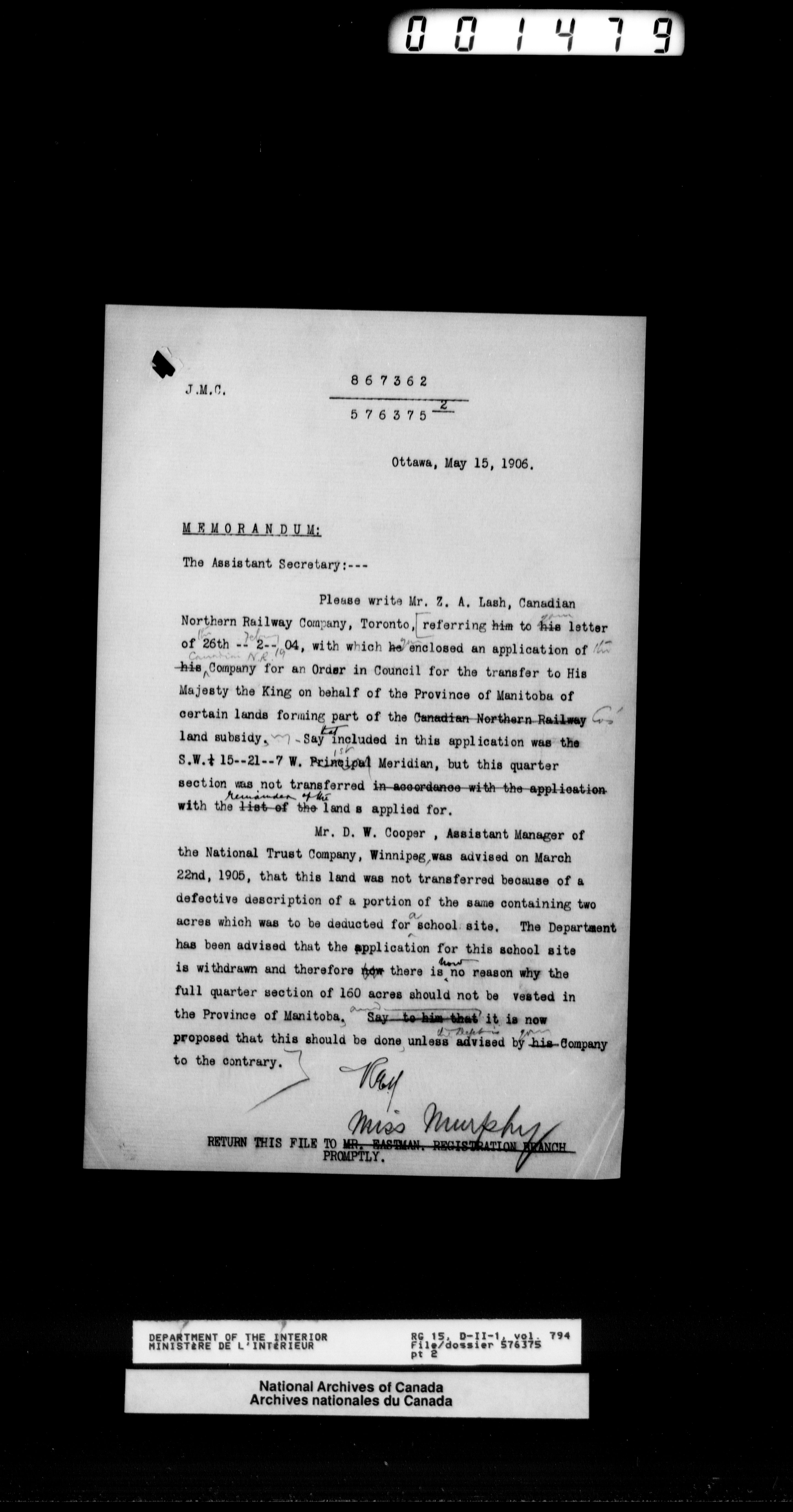 Central registry subject files created by the Dominion Lands Branch - 12622