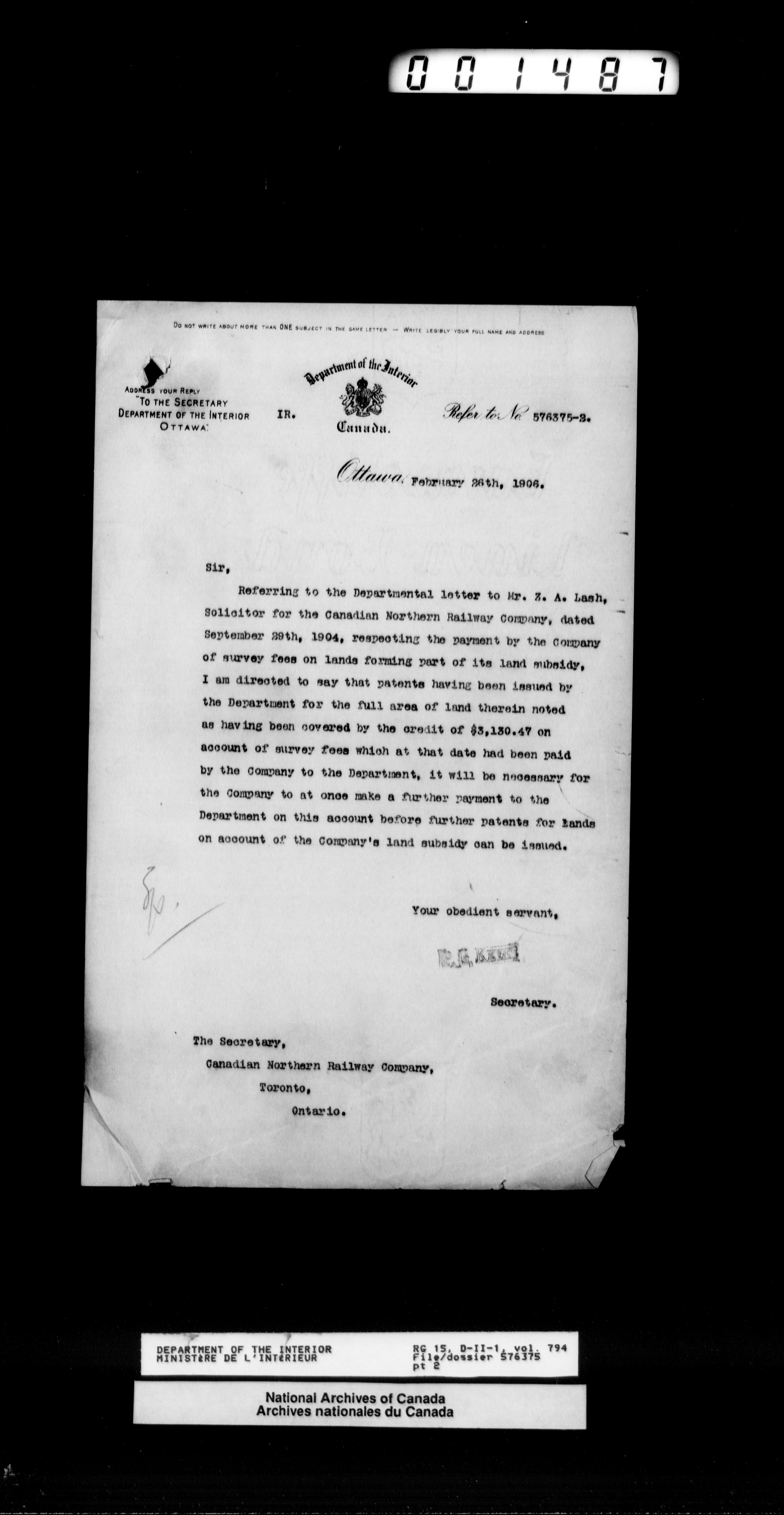 Central registry subject files created by the Dominion Lands Branch - 12622