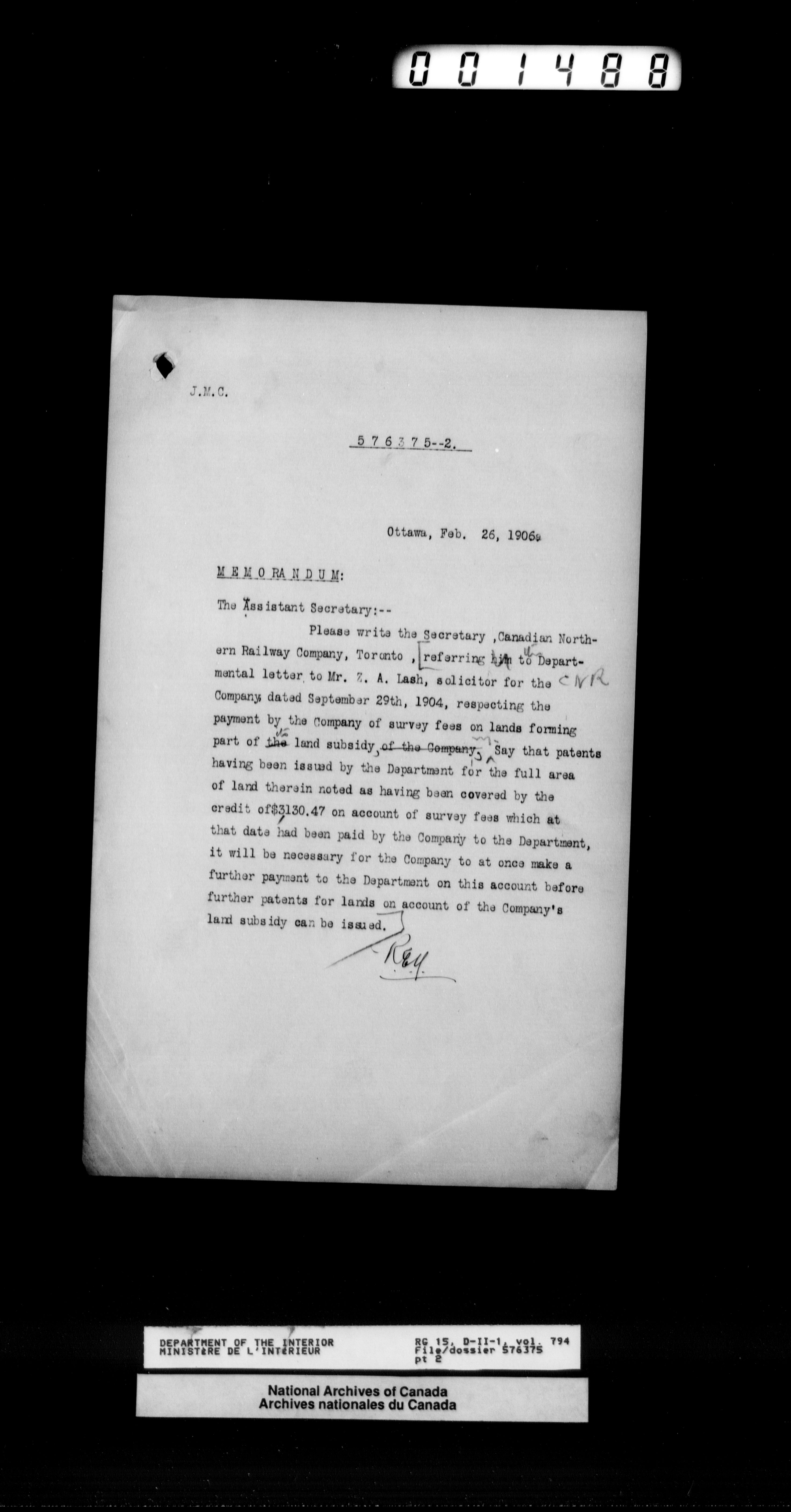 Central registry subject files created by the Dominion Lands Branch - 12622