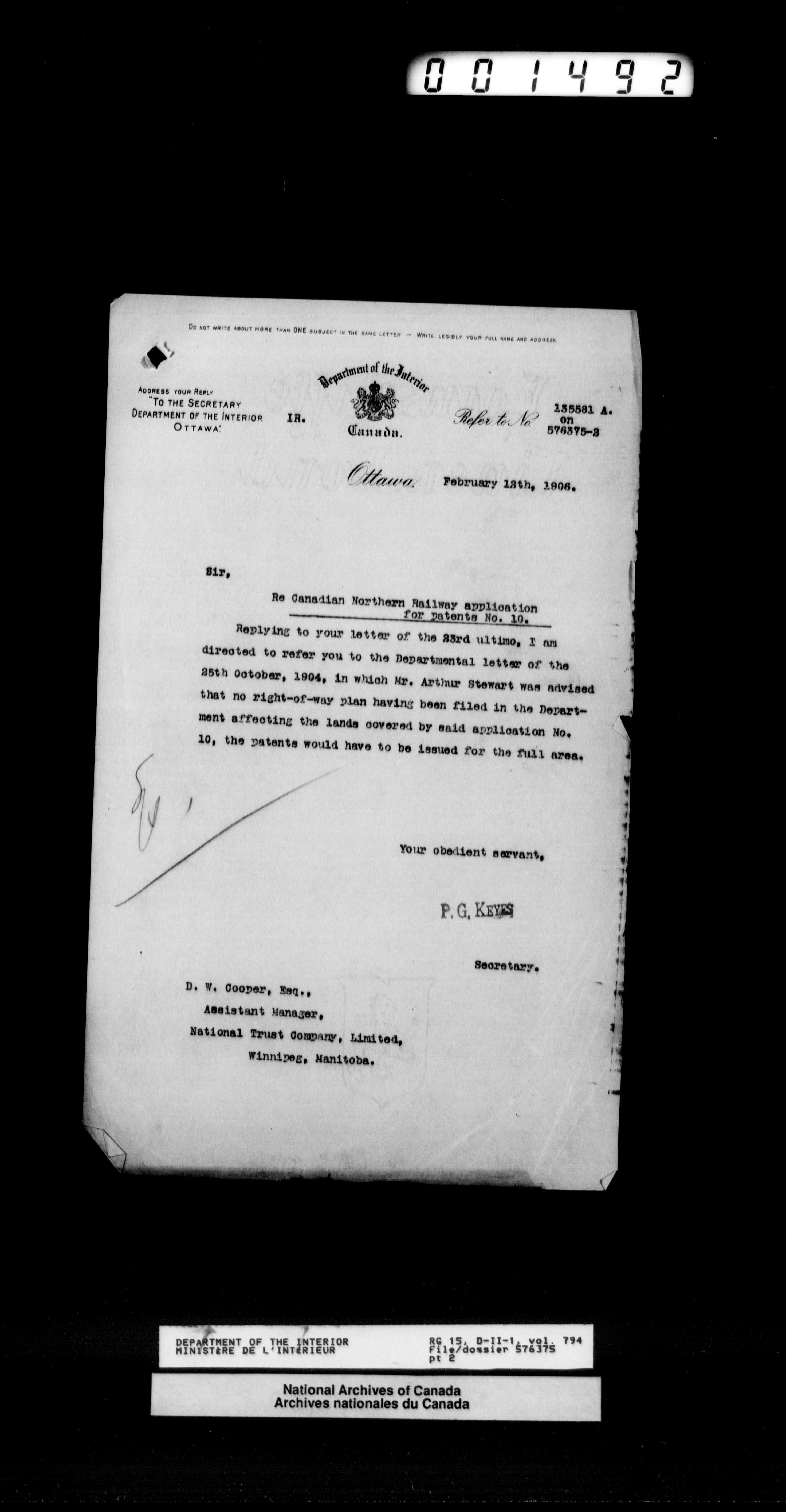 Central registry subject files created by the Dominion Lands Branch - 12622