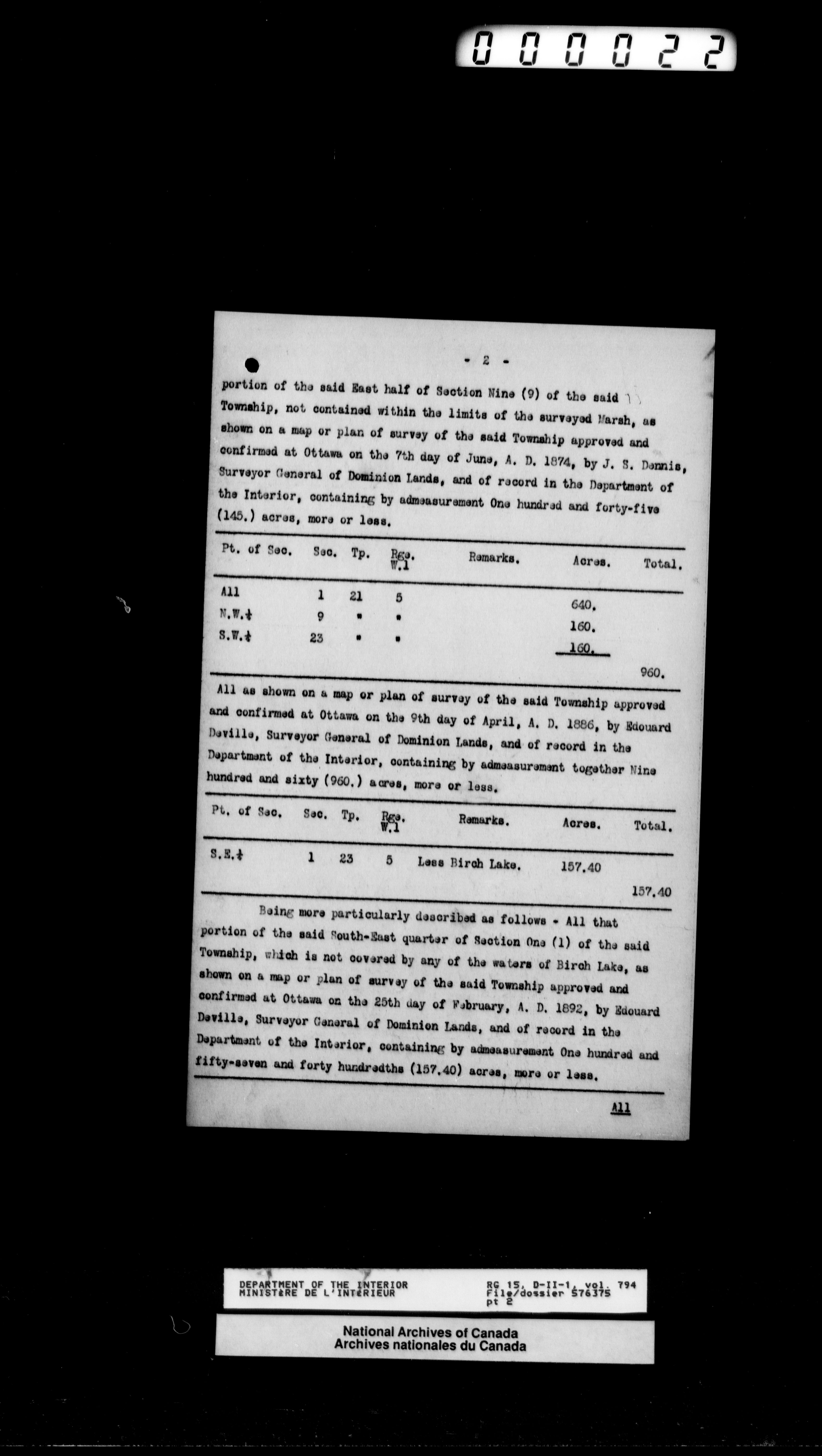 Central registry subject files created by the Dominion Lands Branch - 12623