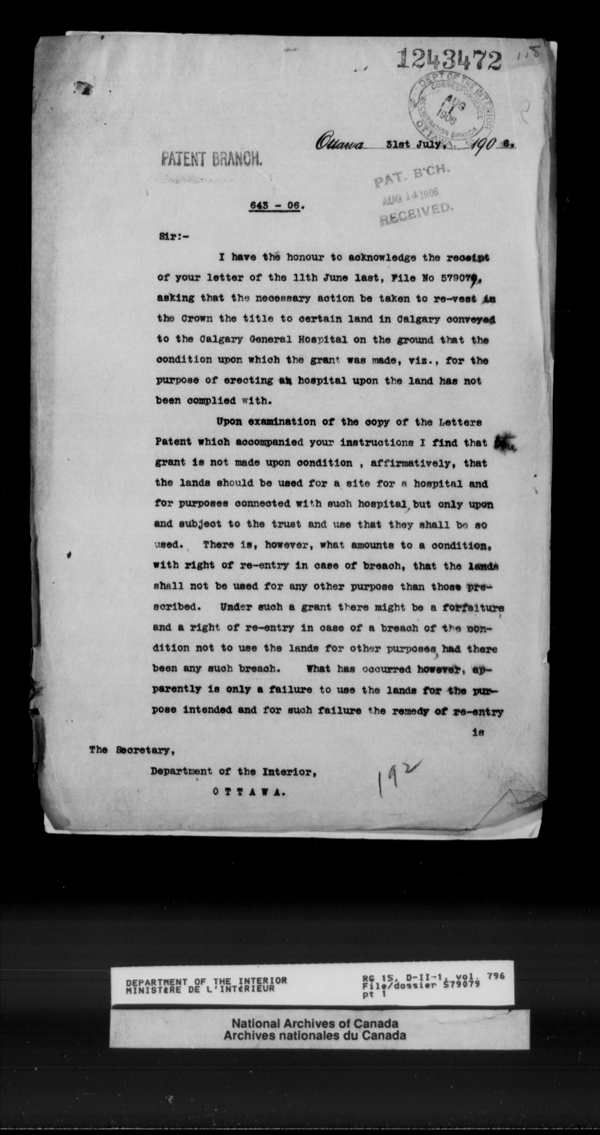 Department of Interior, Dominion Lands Branch, Headquarters correspondence, 1871-1946