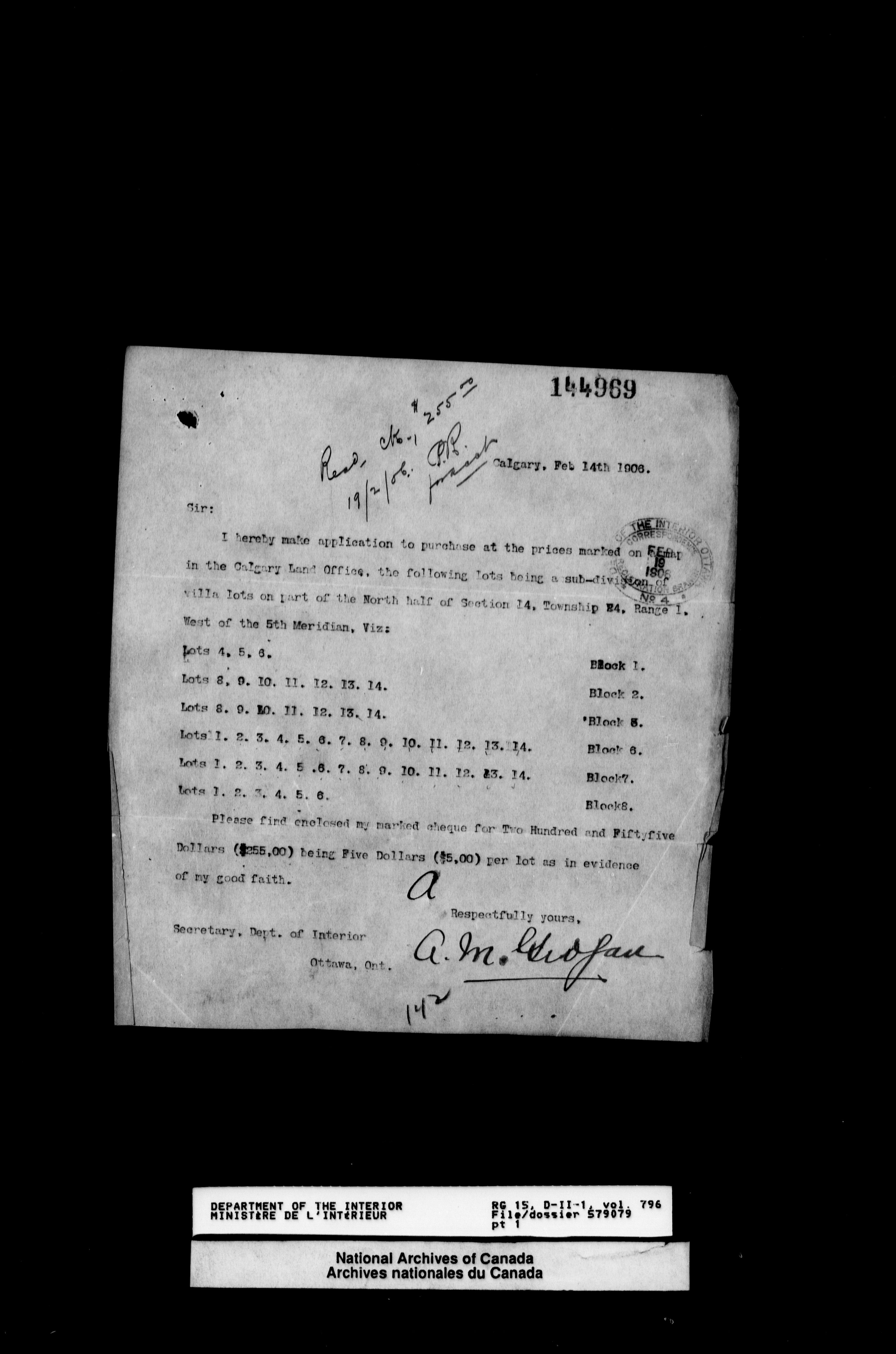 Central registry subject files created by the Dominion Lands Branch - 12625