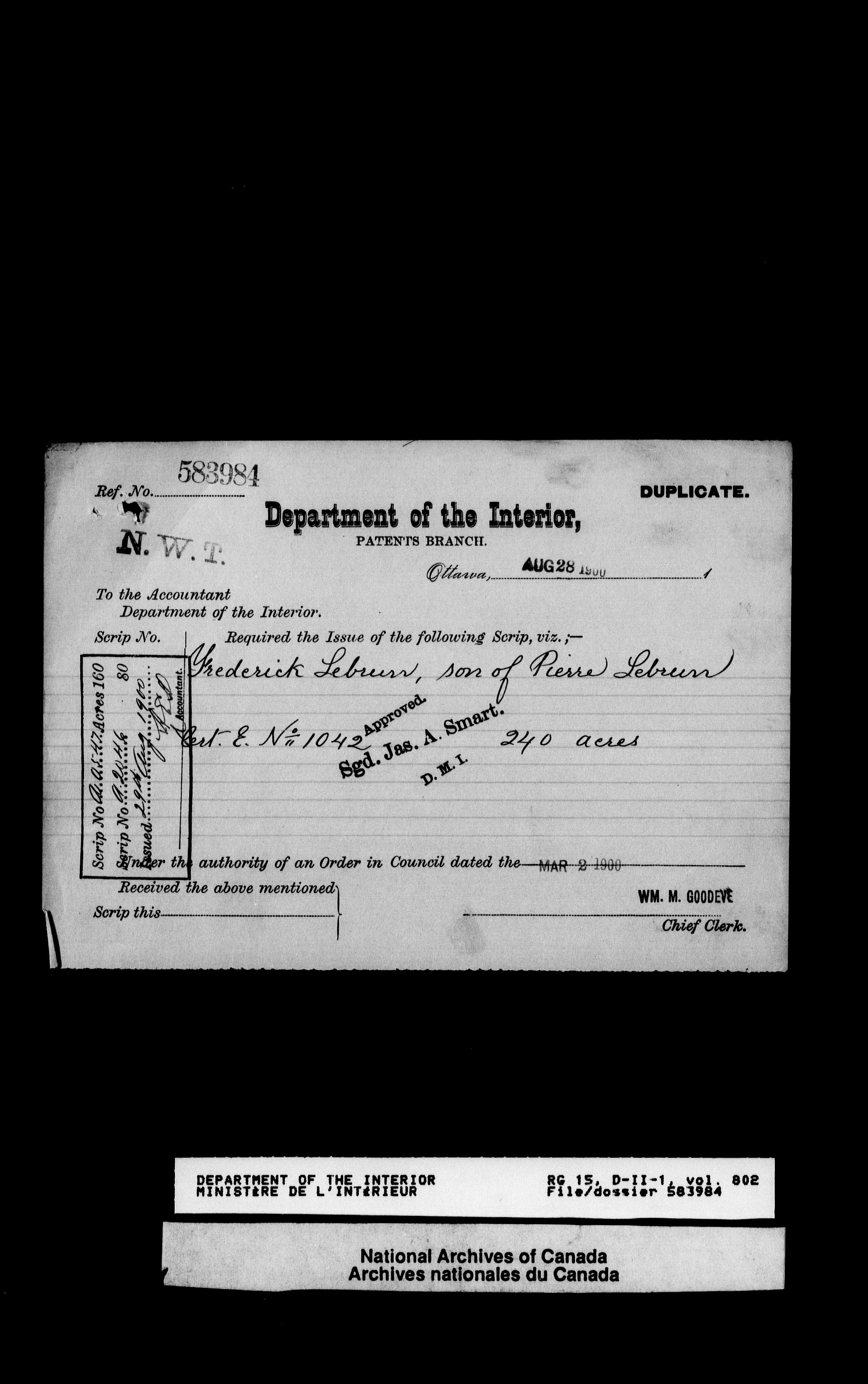 Central registry subject files created by the Dominion Lands Branch - 12629
